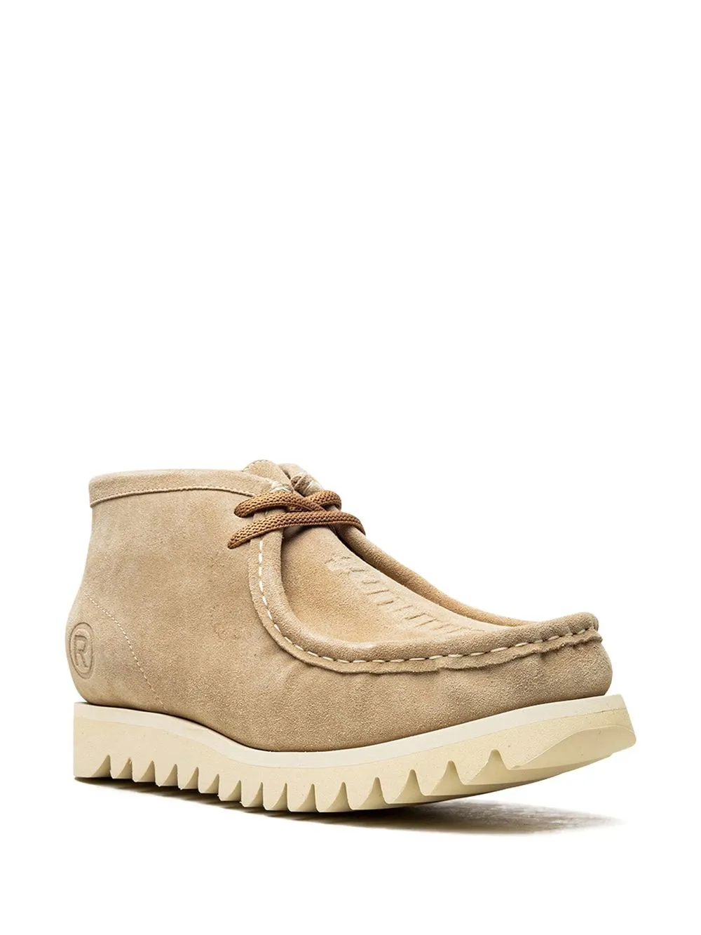 BAPE’s Manhunt M2 boots sport a sleek beige-hued design, enhanced by a tonal debossed logo on top and sides. This model is crafted from a mix of suede and leather, with stitched detailing throughout, and stands out because of its unique rubber sole – uniquely designed to look like the teeth seen on previous A BATHING APE® design.