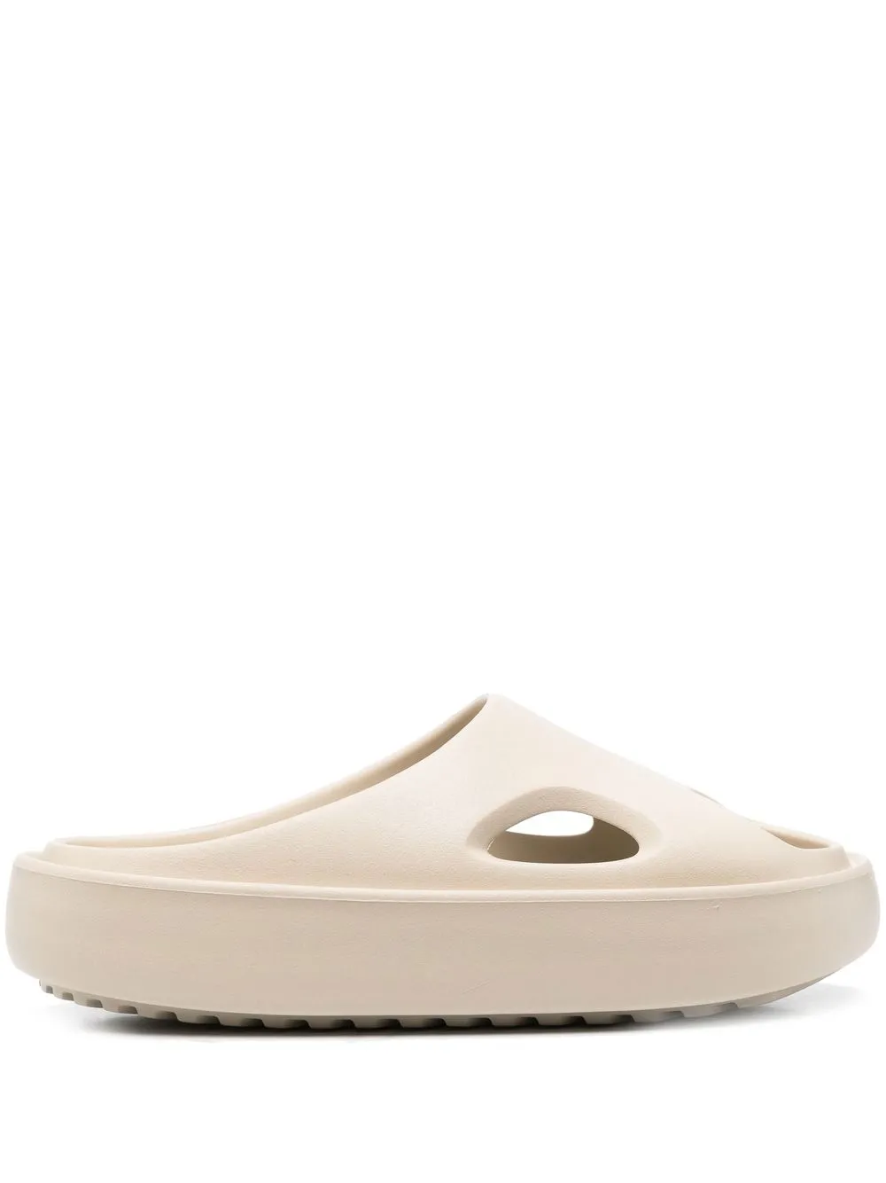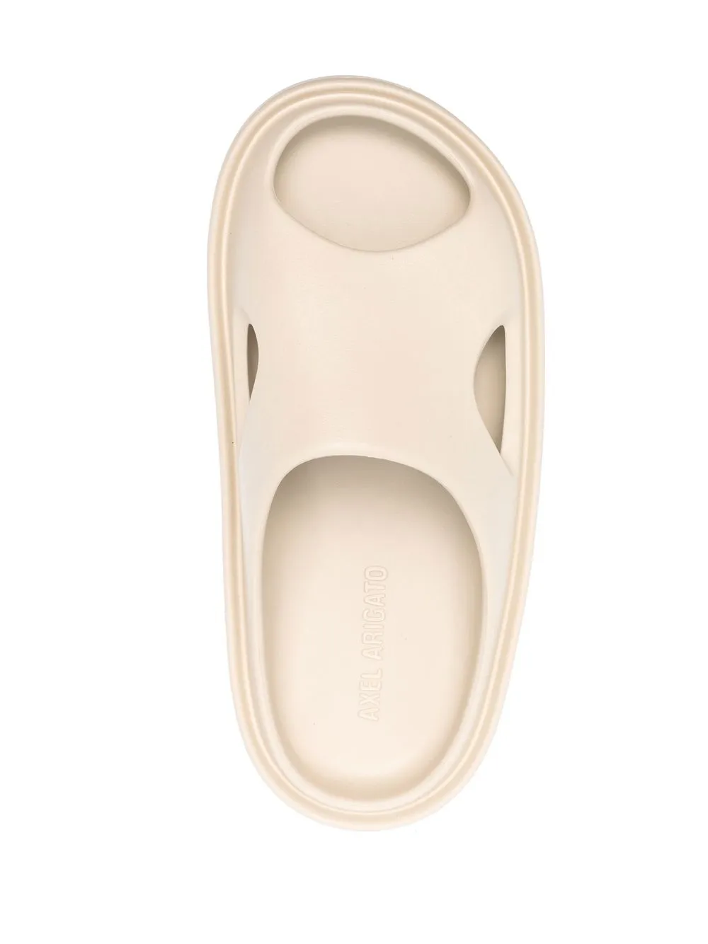 cut-out sliders from AXEL ARIGATO featuring light beige, cut-out detailing, open toe, branded insole and rubber sole.