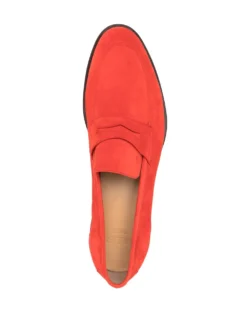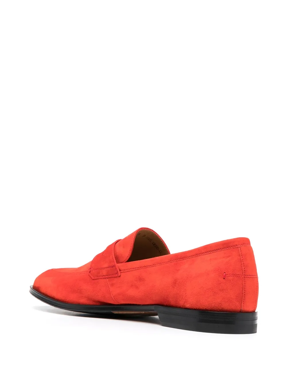 Webb suede loafers from BALLY featuring sunset orange, calf suede, debossed logo to the front, branded insole, branded footbed, crossover strap detail, almond toe and leather and rubber sole.