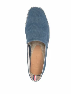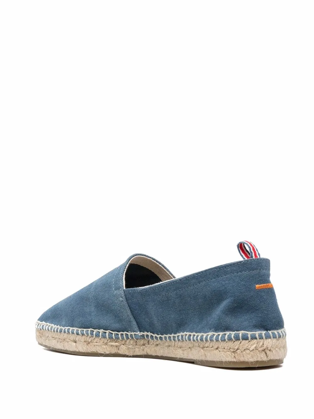 Denim blue canvas/leather Pablo cotton-canvas espadrilles from CastaƱer featuring contrast stitching, almond toe, branded leather insole, pull-tab at the heel, flat rubber sole and jute midsole.