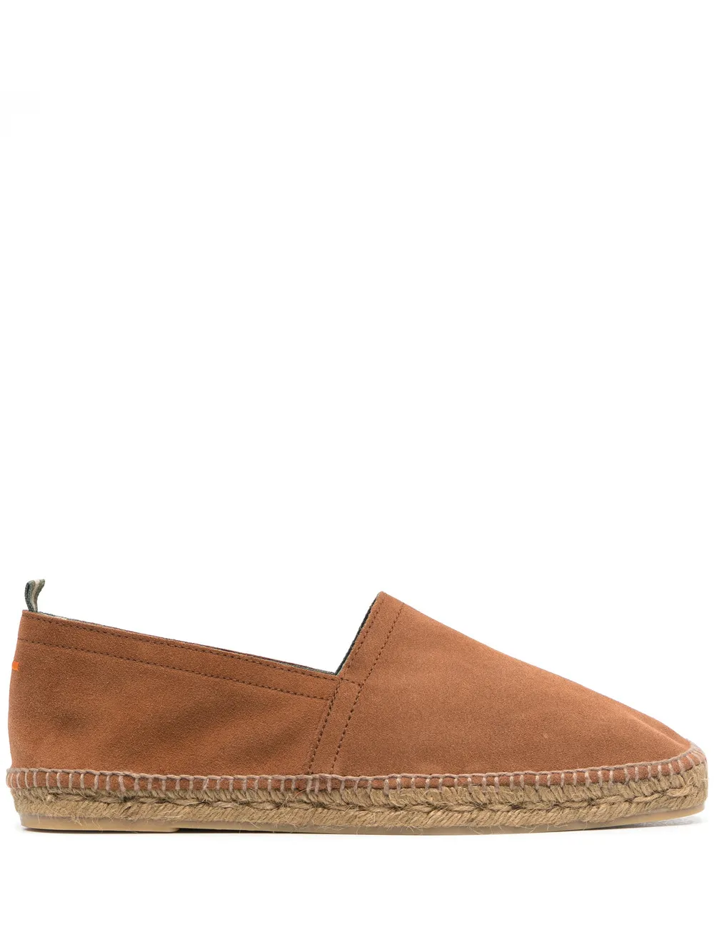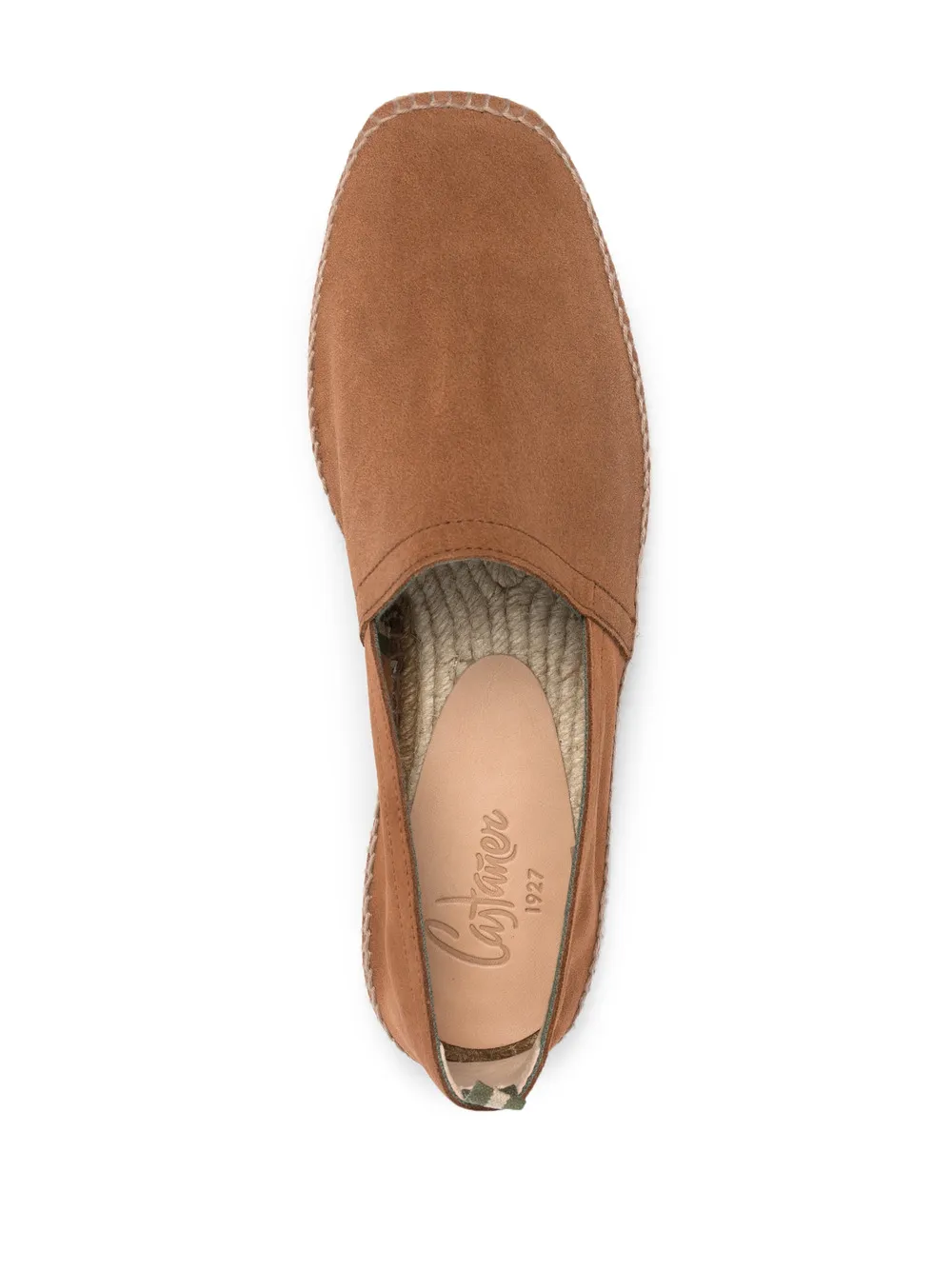 Cuero brown leather Pablo slip-on espadrilles from CASTAĆER featuring branded insole, round toe, slip-on style, branded insole and braided raffia sole.