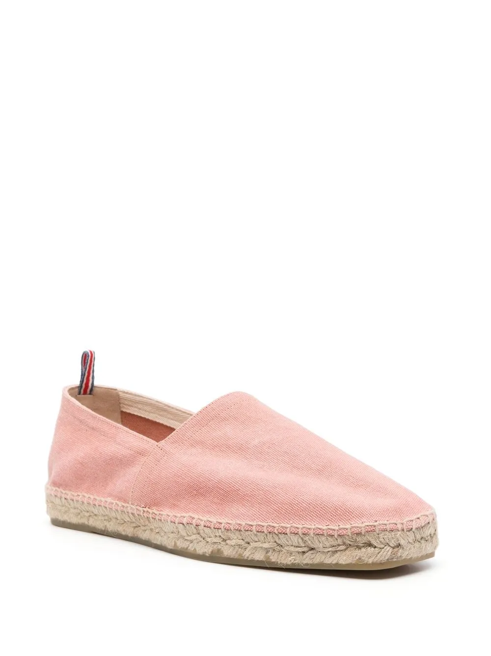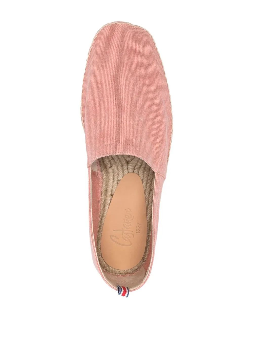 pull-tab flat espadrilles from CastaƱer featuring powder pink, pull-tab at the heel, almond toe, slip-on style, branded insole, braided raffia sole and flat rubber sole.