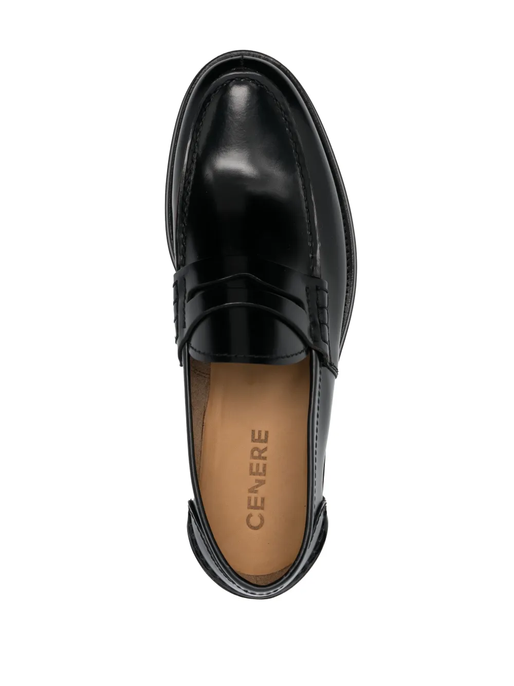 slip-on leather loafers from Cenere GB featuring jet black, calf leather, slip-on style, branded leather insole and leather sole.