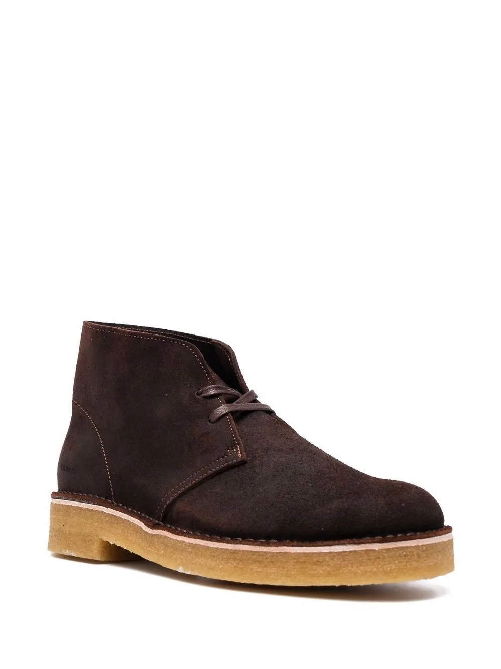 lace-up suede boots from Clarks Originals featuring brown, calf suede, front lace-up fastening, ankle-length, round toe and flat rubber sole.