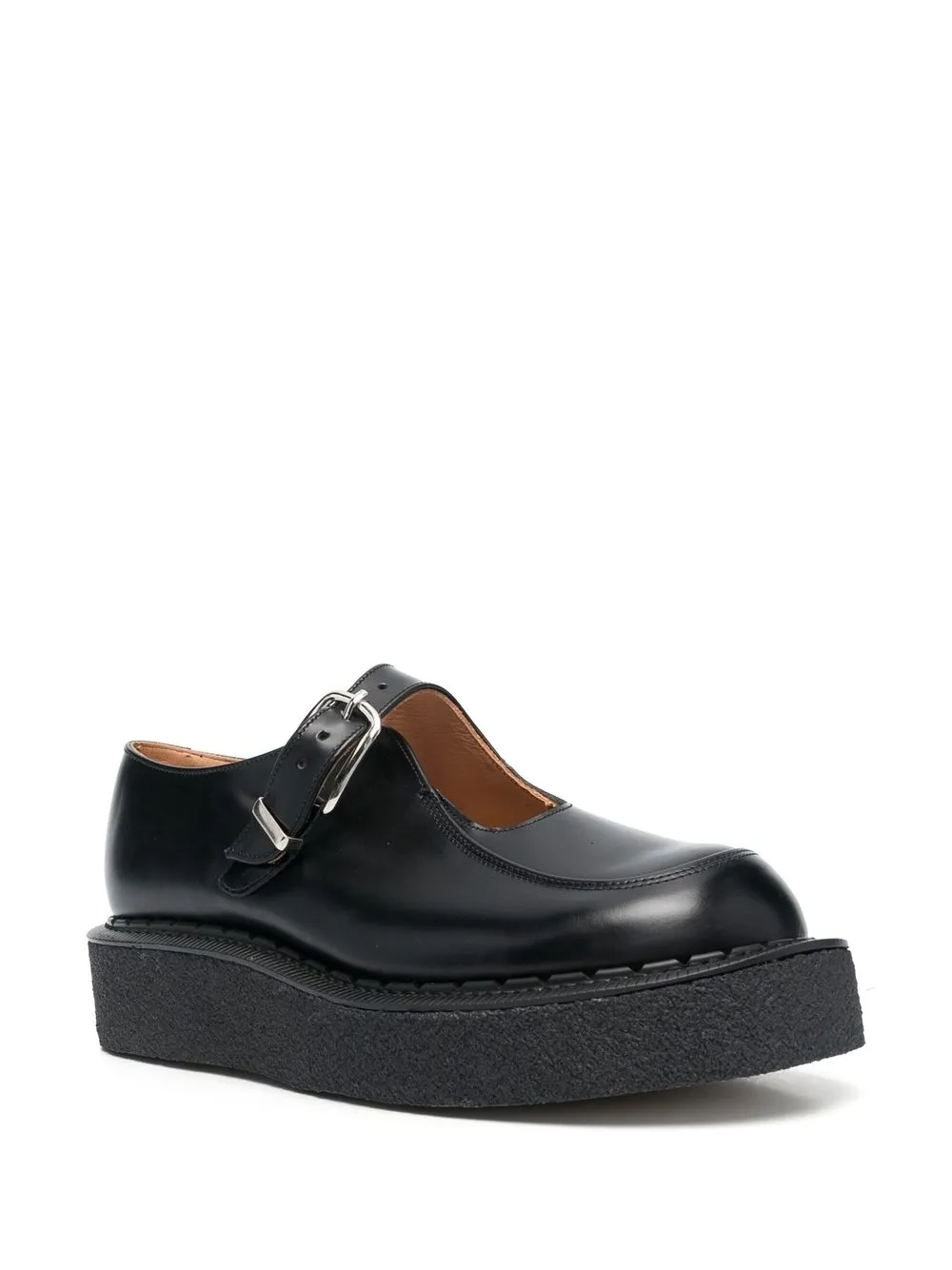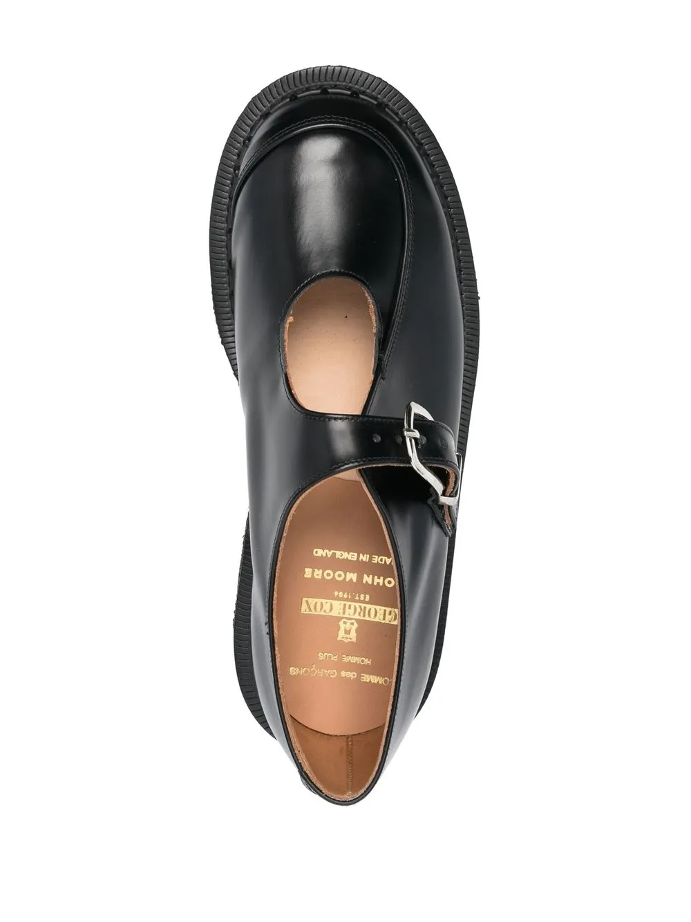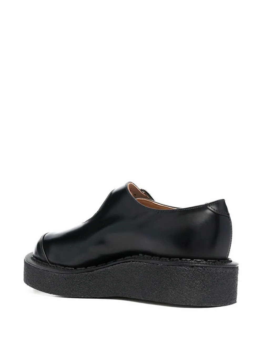 cut-out leather monk shoes from COMME DES GARÇONS HOMME PLUS featuring black, calf leather, smooth grain, cut-out detailing, round toe, buckle-strap fastening, branded insole and flatform sole.