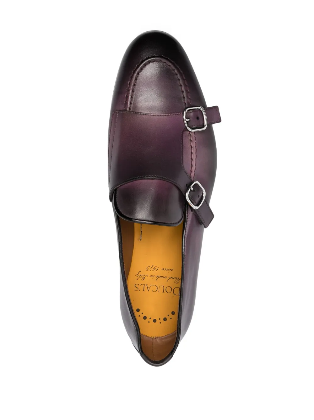 double-strap smooth-leather monk shoes from DOUCAL’S featuring bordeaux red, calf leather, smooth grain, almond toe, monk strap, double buckle fastening, branded leather insole and flat rubber sole.