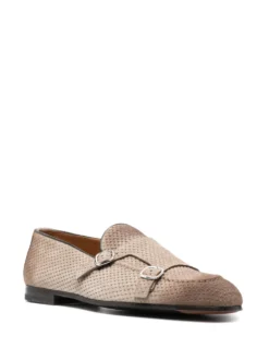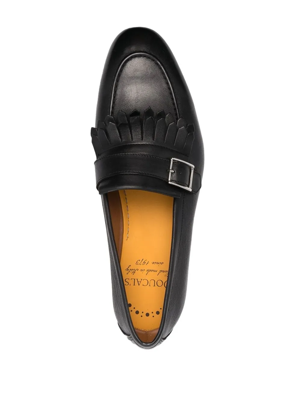 fringe-detail monk shoes from DOUCAL’S featuring side buckle fastening, jet black, calf leather, fringe detailing, almond toe, branded insole and flat sole.
