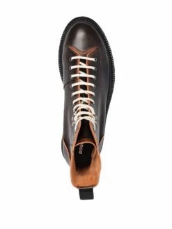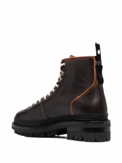 Brown calf leather leather lace-up ankle boots from DSQUARED2 featuring logo patch at the tongue, front lace-up fastening, pull-tab at the heel and rubber lug sole.
