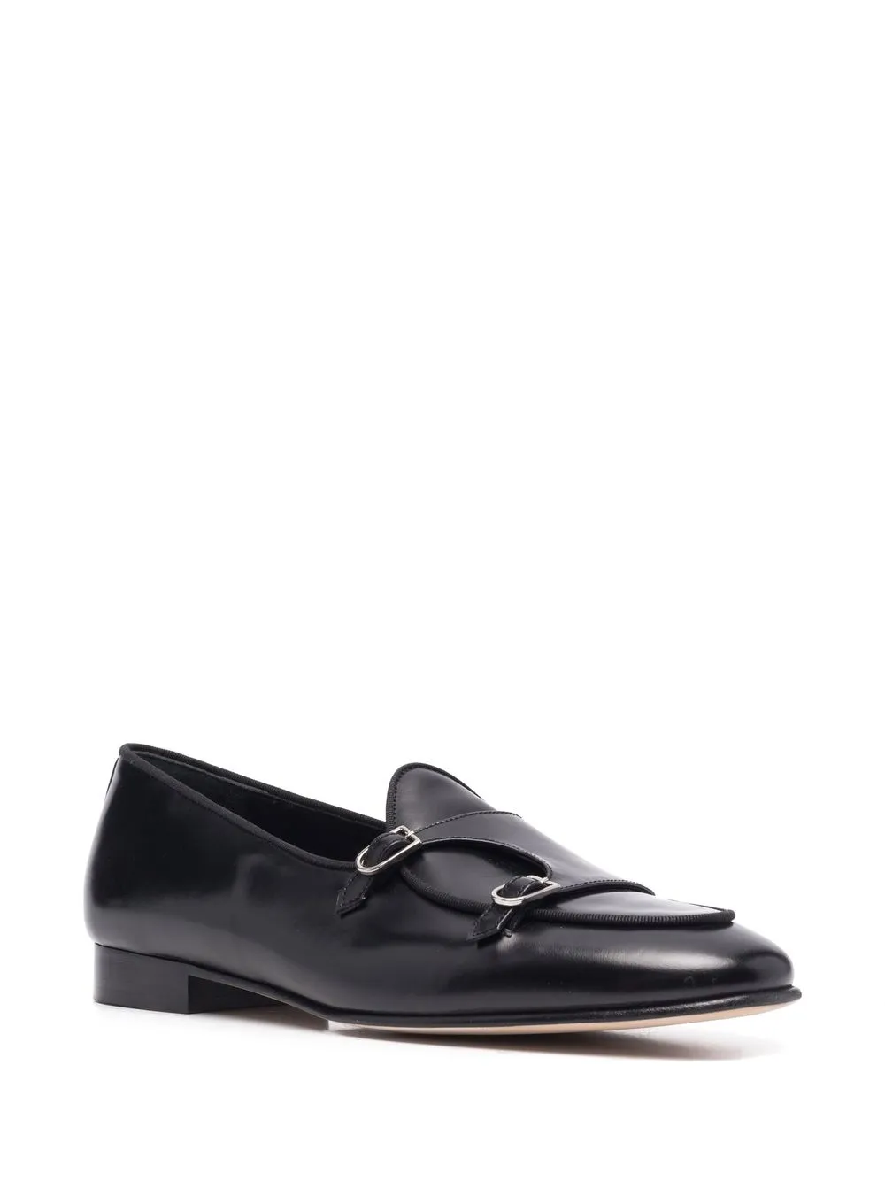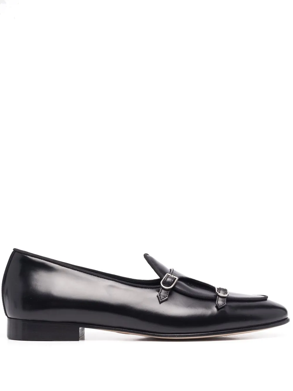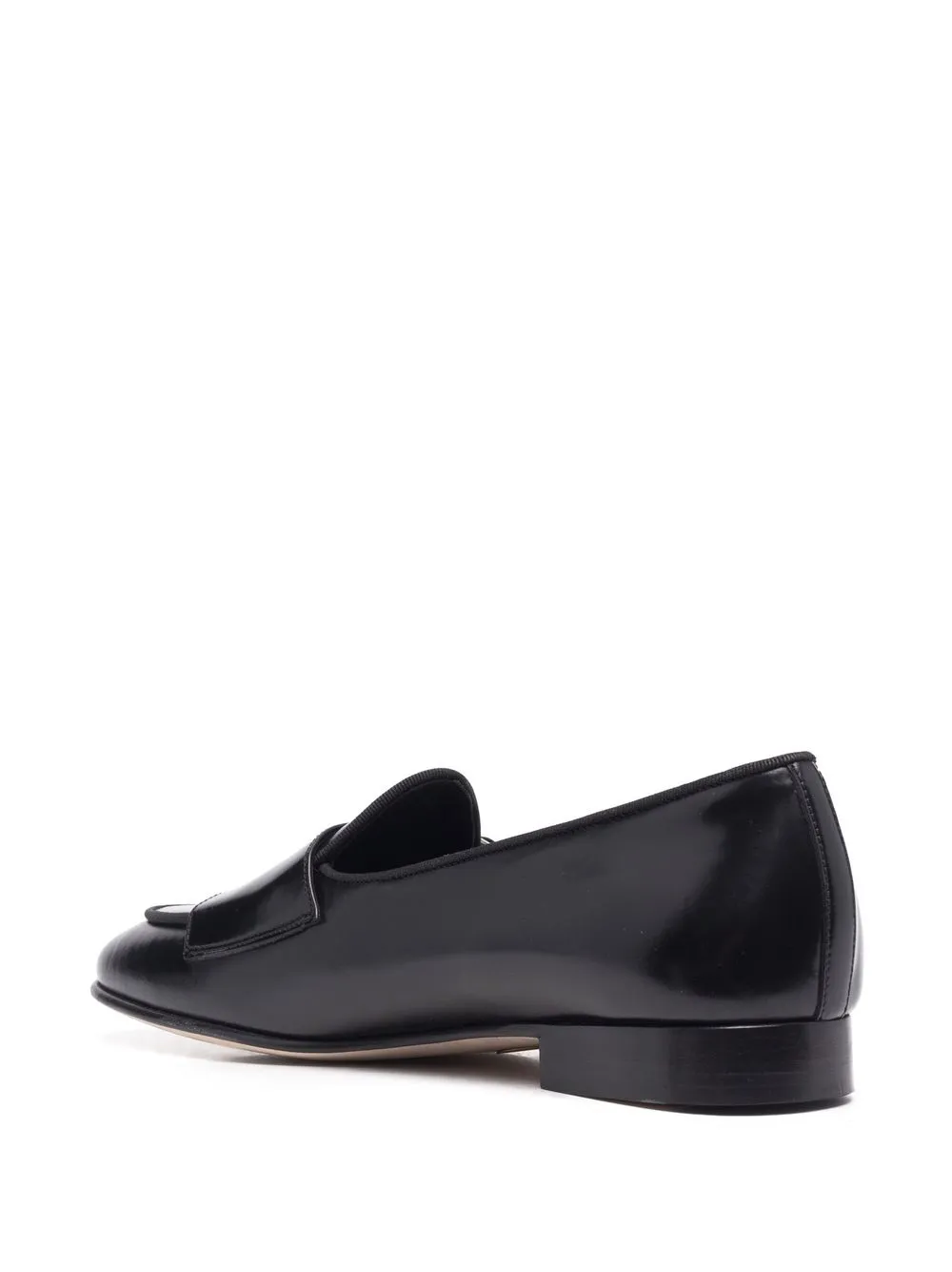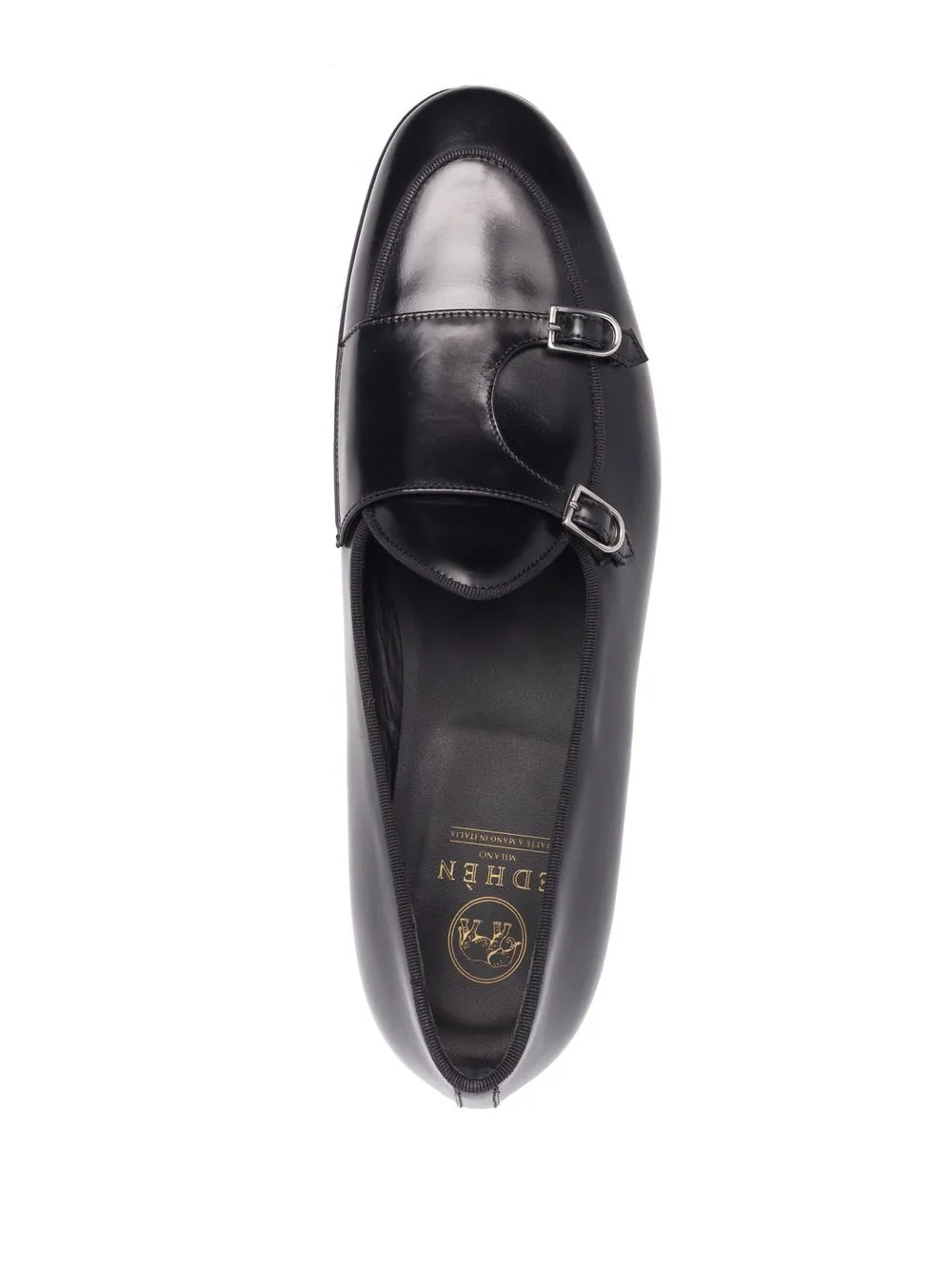 side buckle-detail loafers from Edhen Milano featuring side buckle fastening, jet black, leather, round toe, branded insole and flat leather sole.
