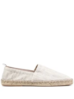 raffia-sole slip-on espadrilles from ELEVENTY featuring light grey, cotton, pull-tab at the heel, branded insole, almond toe, braided raffia sole and slip-on style.