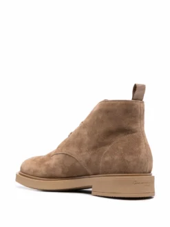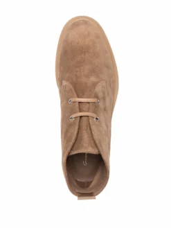 Camel-tone lace-up desert boots from GIANVITO ROSSI featuring round toe, front lace-up fastening, branded leather insole, pull-tab at the heel, low block heel and rubber outsole.