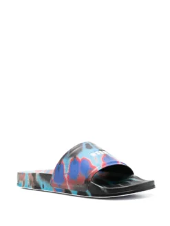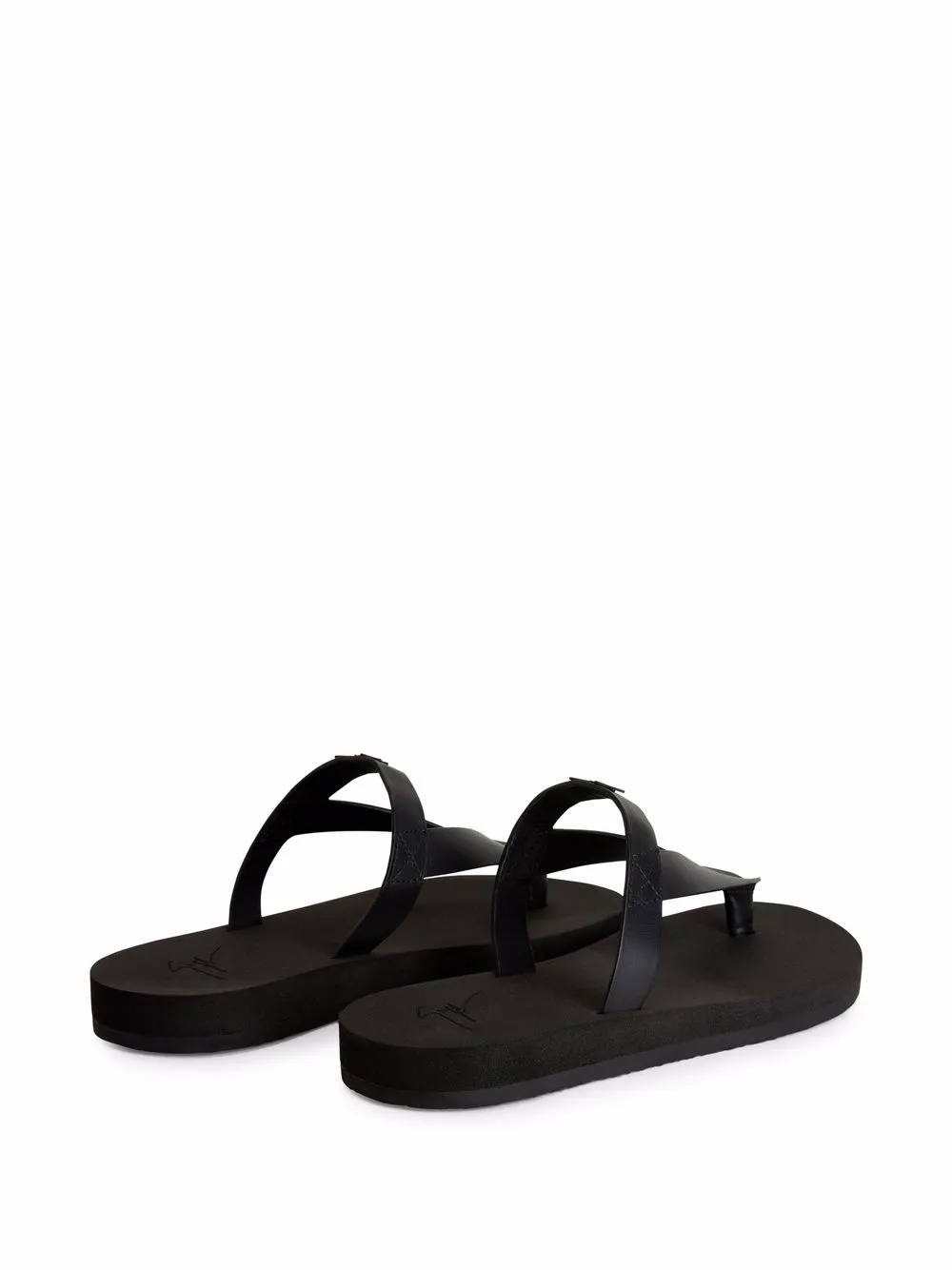 Black leather Hydra thong-strap leather sandals from Giuseppe Zanotti featuring logo patch to the front, thong strap, cut-out detailing, slip-on style and flat rubber sole.