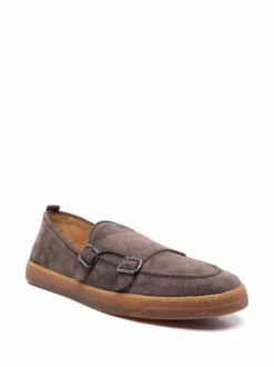 Quinoa brown leather/suede almond-toe suede loafers from HENDERSON BARACCO featuring leather lining, almond toe, slip-on style, branded insole, logo pull-tab at the heel and flat rubber sole.