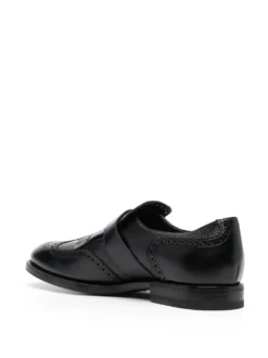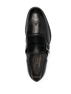 fringe-detail monk shoes from HENDERSON BARACCO featuring jet black, calf leather, fringe detailing, round toe, branded insole and flat sole.