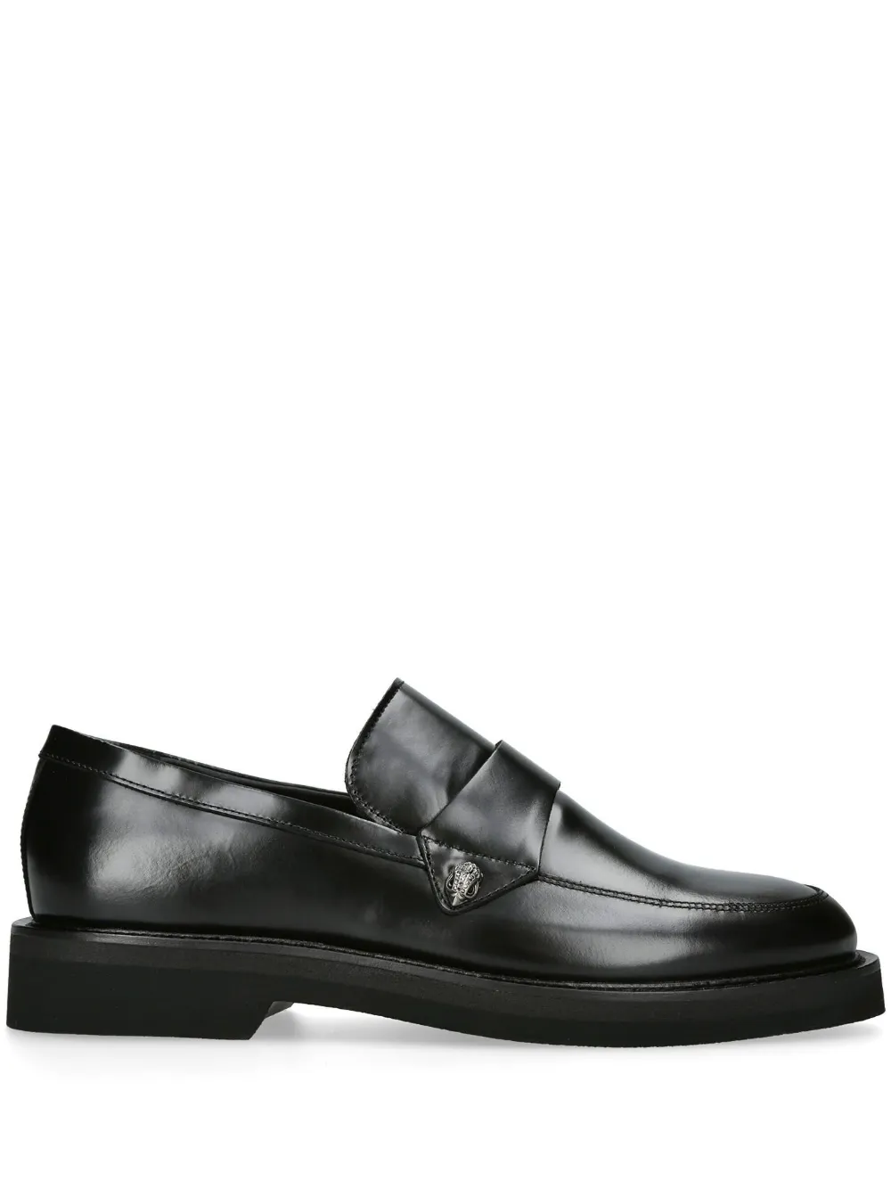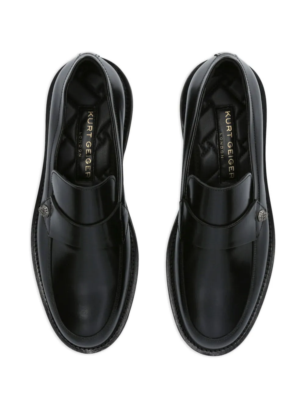 Kurt Geiger’s Bank loafers are crafted from soft calf leather in a classic black colourway. The antiqued silver-tone Eagle head is embellished with crystals and sits atop a subtle strap on the vamp.