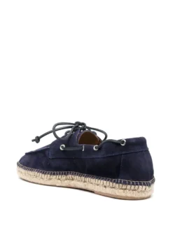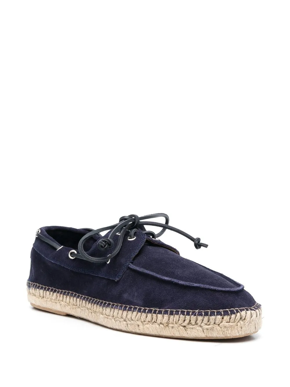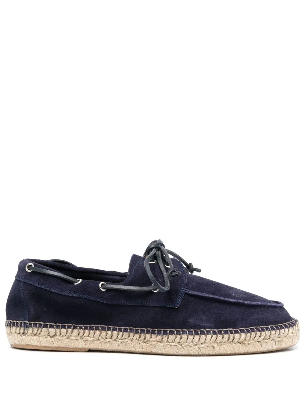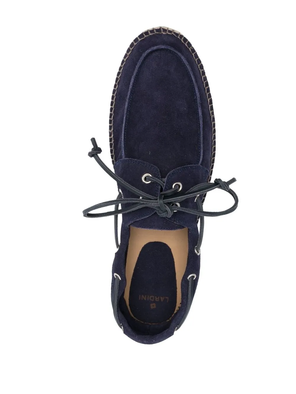 Combining effortless style with a contemporary touch, Lardini presents these espadrilles. In a navy blue hue, they feature silver-tone eyelets and suede lace-up fastenings.