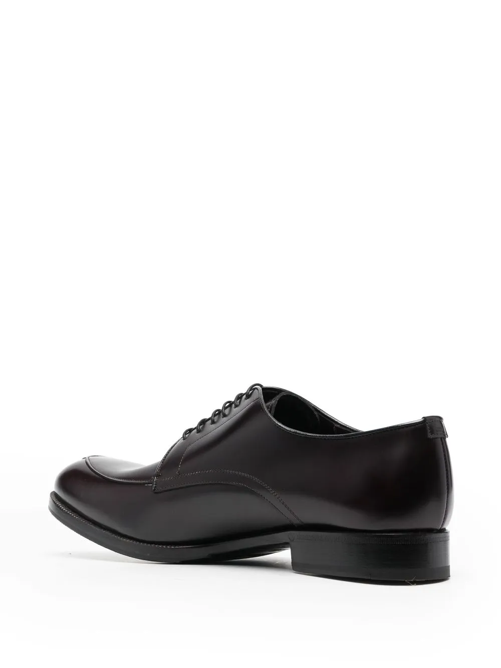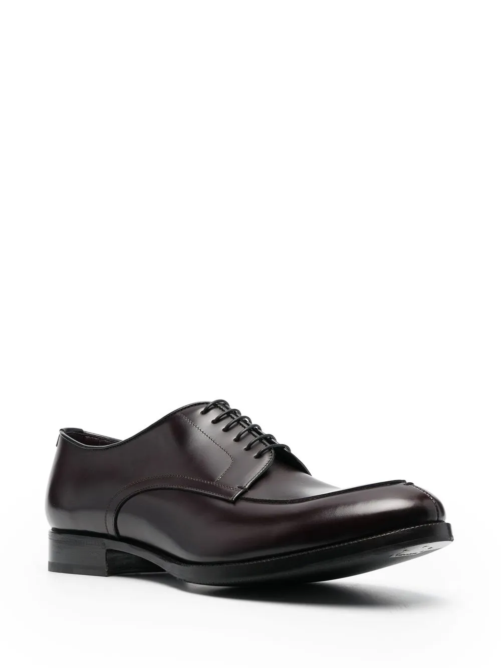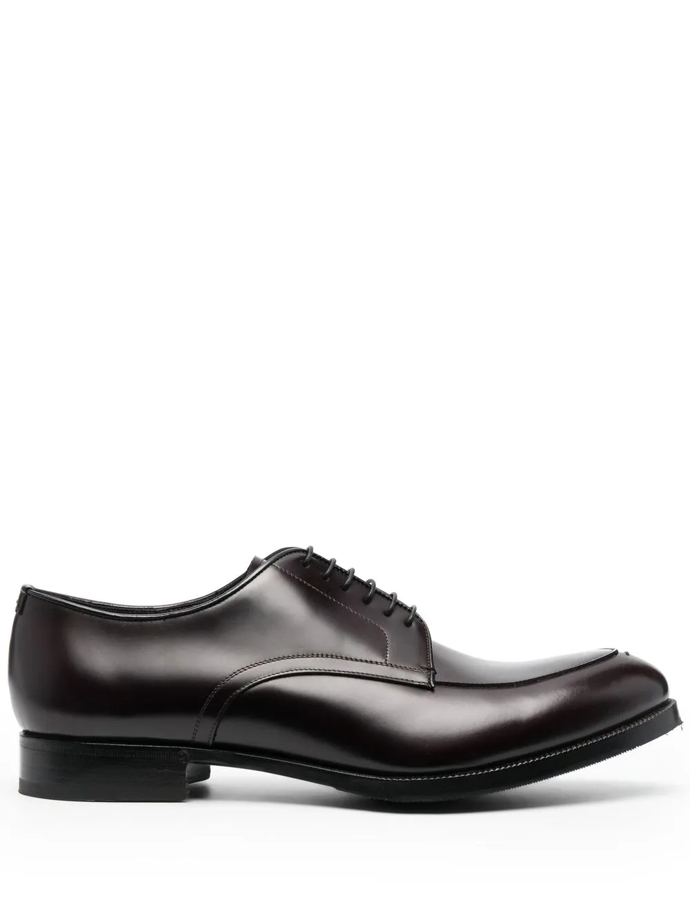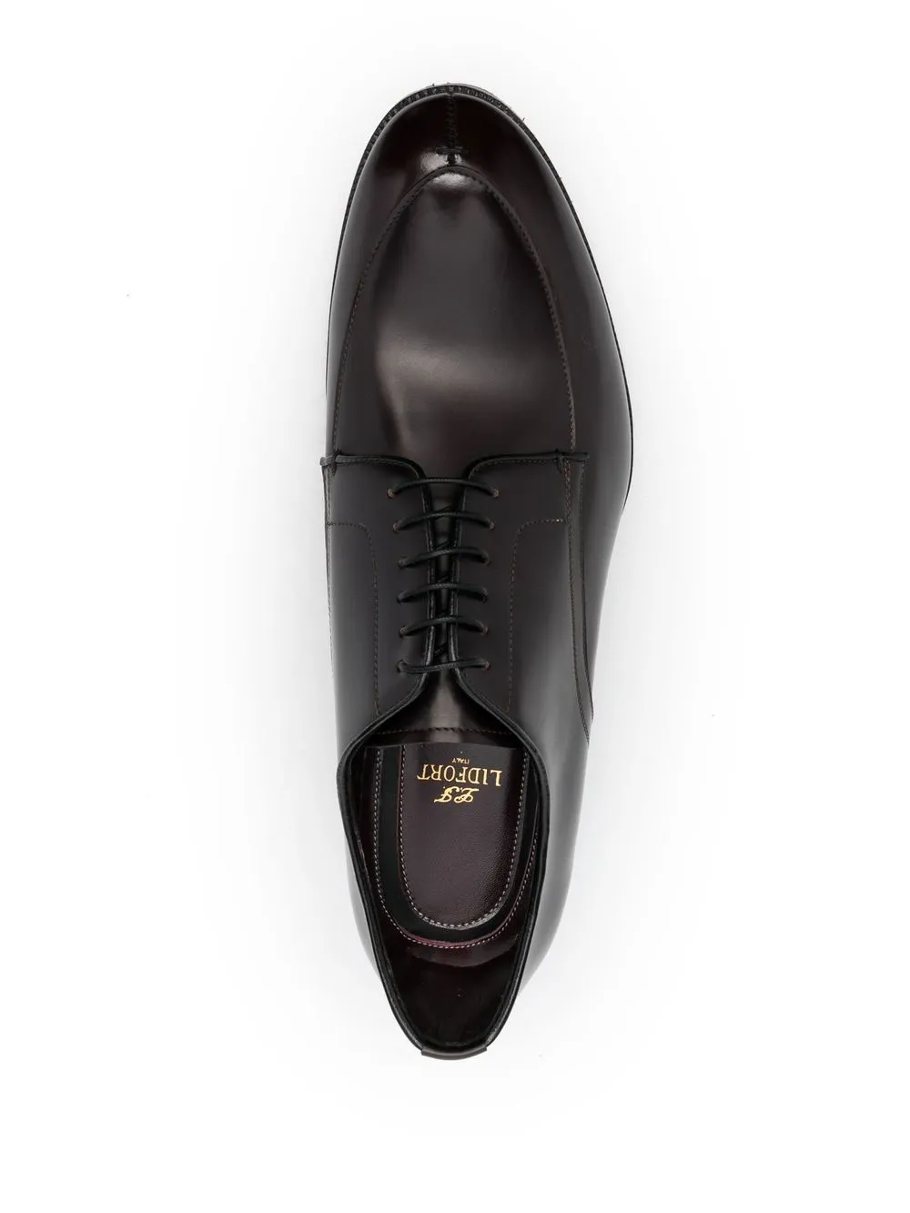 lace-up leather Derby shoes from LIDFORT featuring brown, calf leather, almond toe, front lace-up fastening and stacked sole.