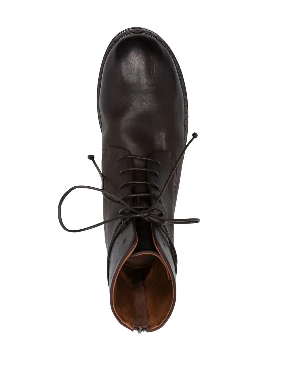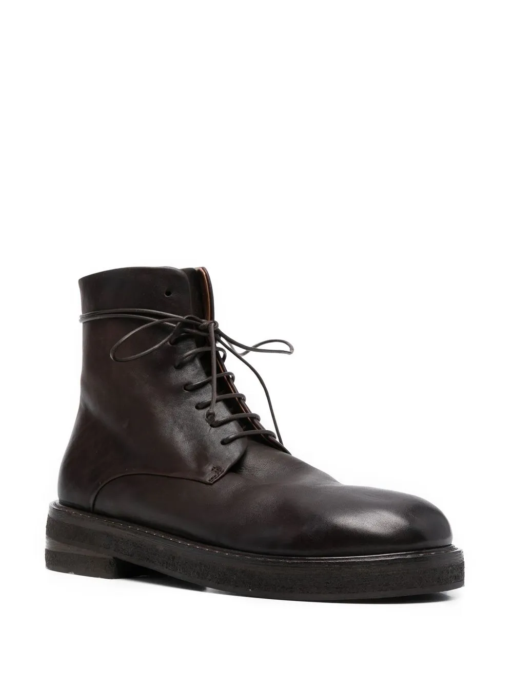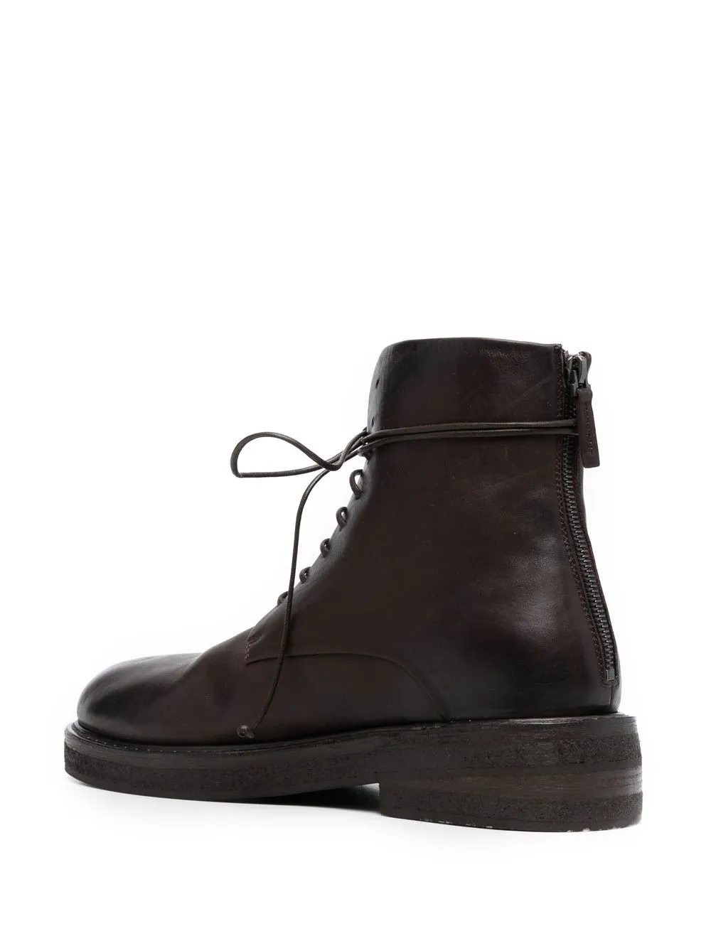 chunky lace-up boots from MARSÈLL featuring brown, calf leather, front lace-up fastening, round toe, rear zip fastening and chunky rubber sole.