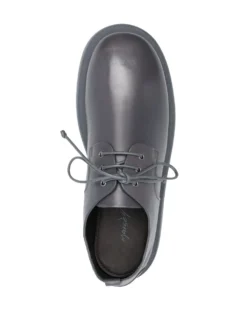 chunky lace-up derby shoes from MARSÈLL featuring battleship grey, calf leather, almond toe, front lace-up fastening and low block heel.