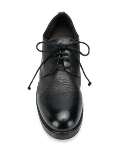 Luxury shoe brand, Marséll’s timeless craftsmanship transcends across their accessories collection, with lived-in leather and small details hallmarks of the label, as seen with these black leather lace-up derby shoes. Featuring a lace-up front fastening, a pull tab at the rear, a low block heel and a pebbled leather texture.