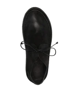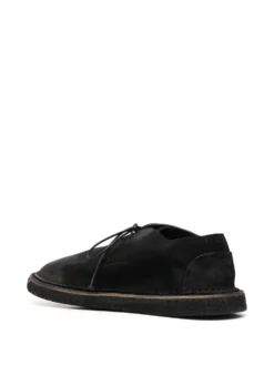 wide-cut derby shoes from MARSÈLL featuring black, calf leather, front lace-up fastening, round toe, branded insole, flat rubber sole and wide cut.