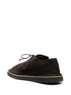 wide-cut suede derby shoes from MARSÈLL featuring brown, calf leather, round toe, front lace-up fastening, flat rubber sole and wide cut.