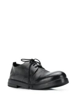 wide-cut suede derby shoes from MARSÈLL featuring brown, calf leather, round toe, front lace-up fastening, flat rubber sole and wide cut.