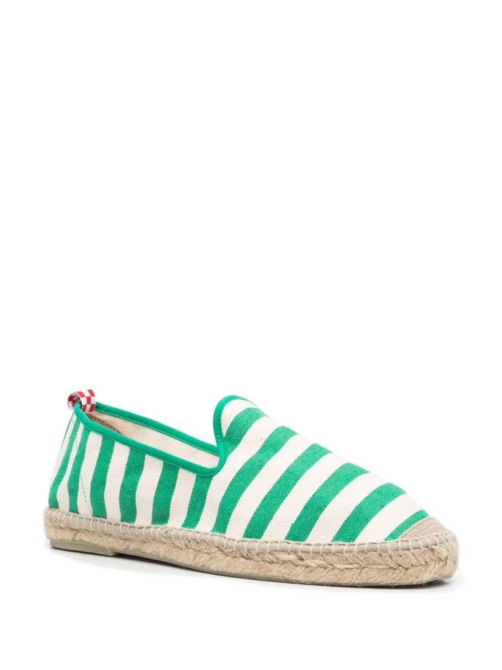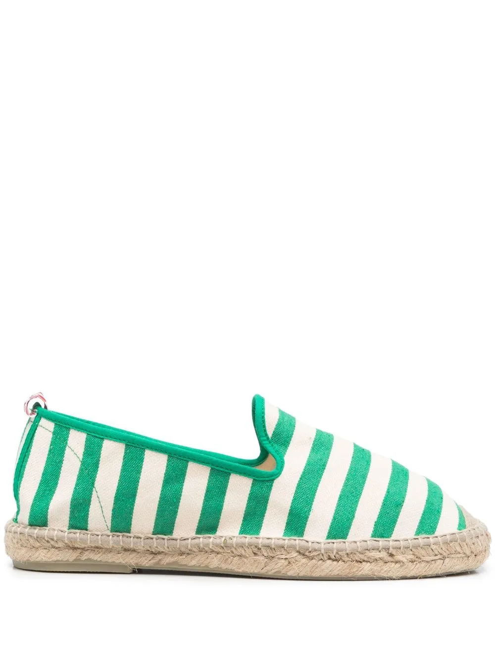 striped slip-on espadrilles from MC2 SAINT BARTH featuring bright green, white, jute, stripe print, round toe and flat sole.