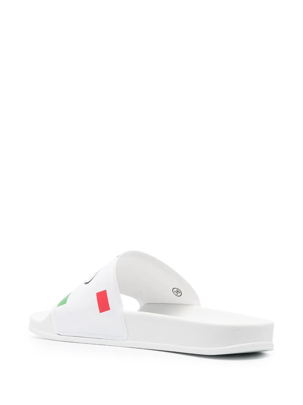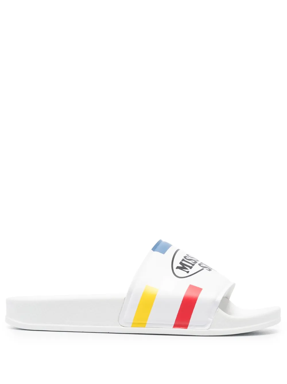 Crafted from smooth rubber, Missoni presents these rubber slides for SS23. They boast wide straps detailed with a colourful abstract pattern, and the label’s logo for a branded finish.