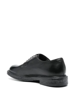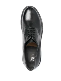 leather derby shoes from MOMA featuring black, calf leather, round toe, front lace-up fastening, branded insole and low heel.