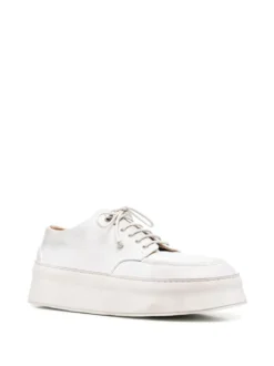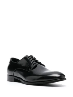 leather derby shoes from MOMA featuring black, calf leather, round toe, front lace-up fastening, branded insole and low heel.