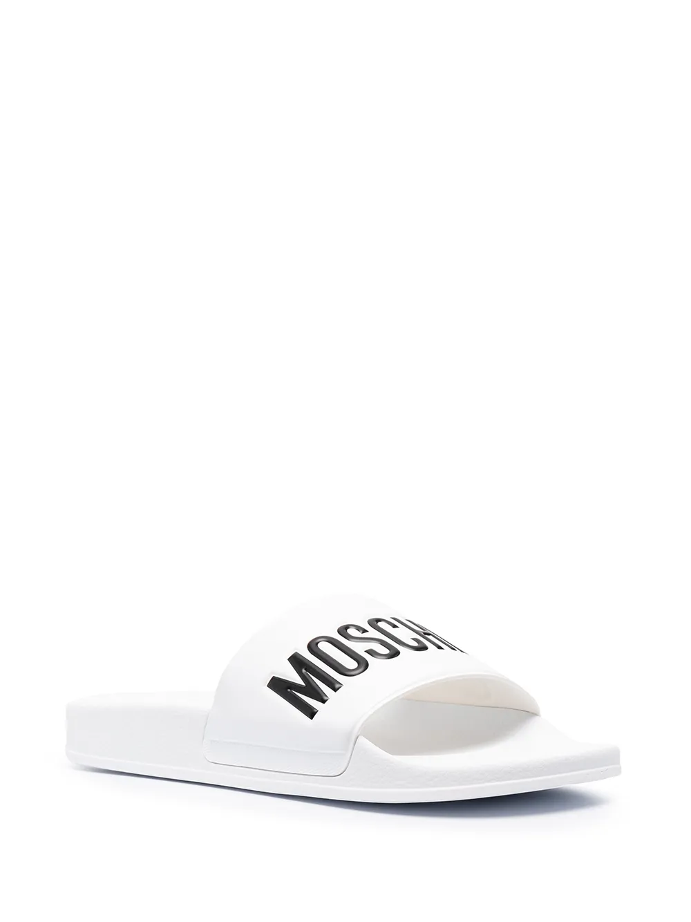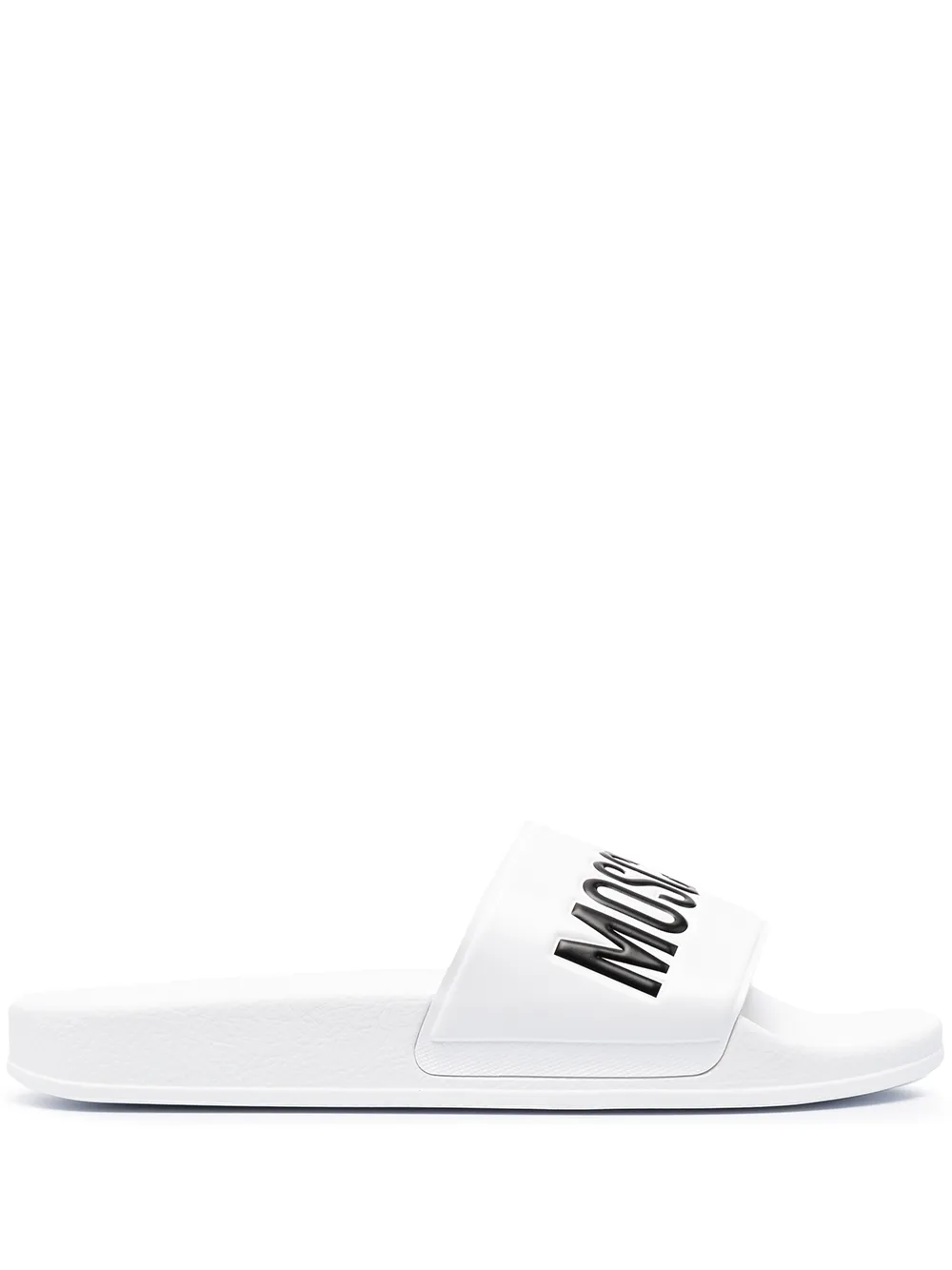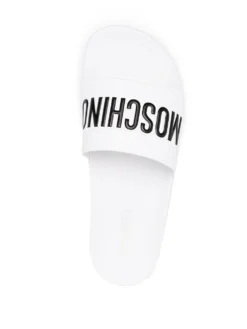 Head to the pool in effortless style, with Moschino. With a logo detail at the toe, these slide sandals were made for slipping on and chilling out. Get comfortable.