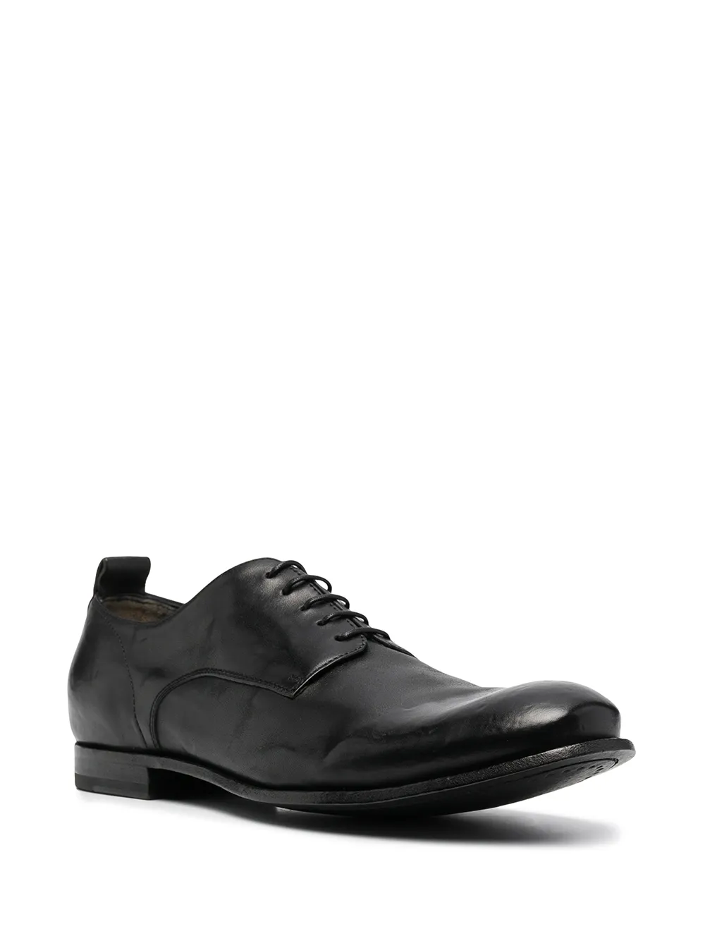 Black leather leather derby shoes from OFFICINE CREATIVE featuring pull-tab at the heel, branded insole, round toe, front lace-up fastening and leather sole.