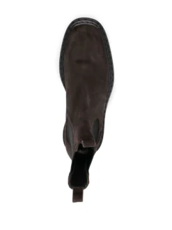 Pistols suede boots from OFFICINE CREATIVE featuring brown, calf suede, leather, elasticated side panels, logo pull-tab at the heel, almond toe, slip-on style, ridged rubber sole and low heel.