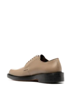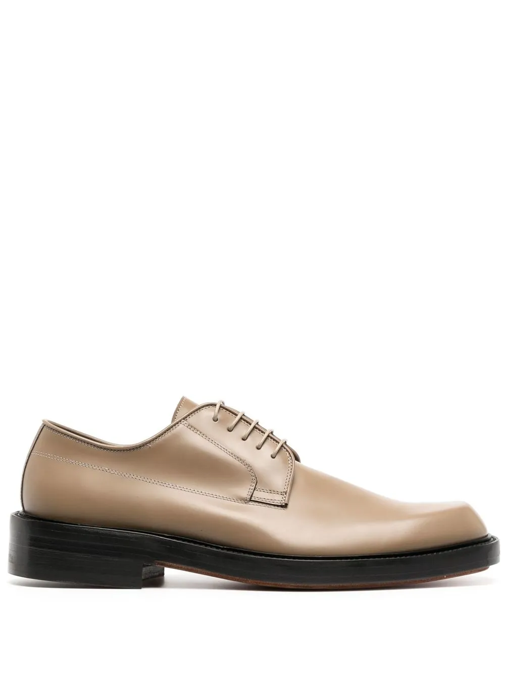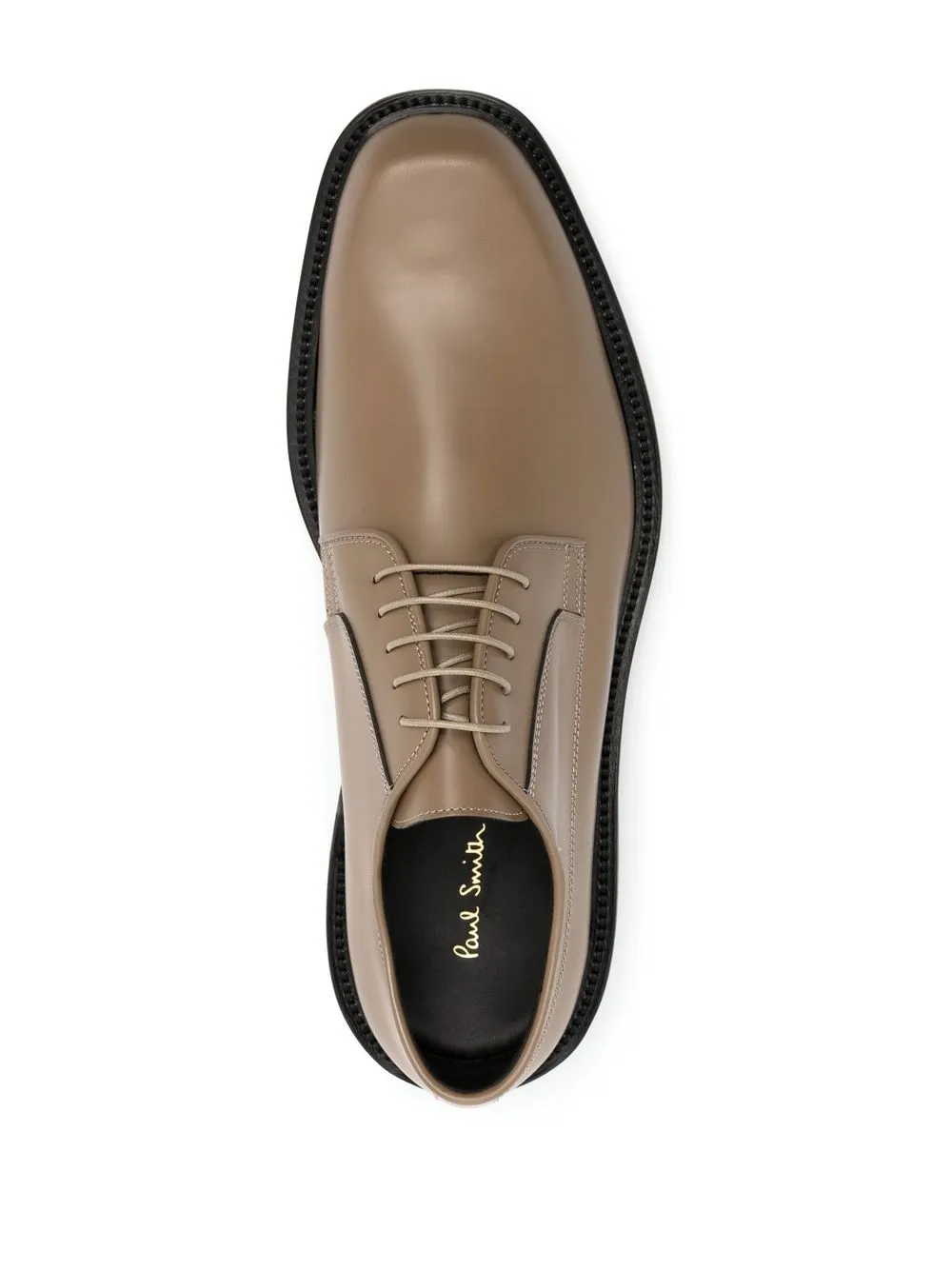 chunky-sole lace-up derby shoes from Paul Smith featuring square toe, front lace-up fastening, branded insole, flat rubber sole, taupe brown, calf leather and leather.