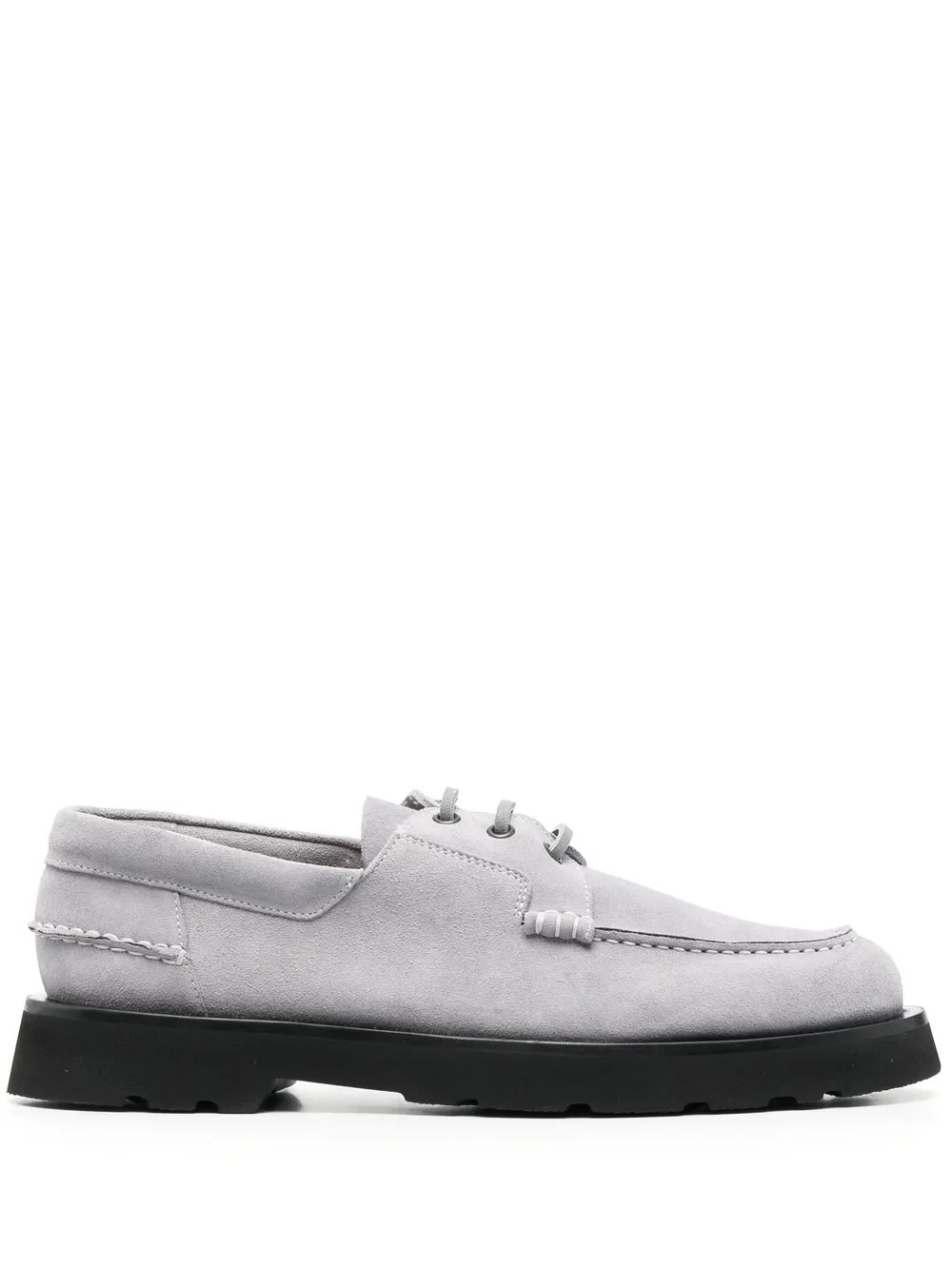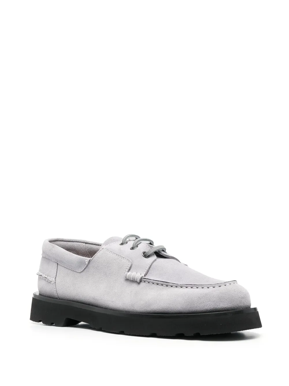 contrast-lining suede derby shoes from Paul Smith featuring slate grey, calf leather, calf suede, contrast lining, slip-on style, branded insole, chunky rubber sole and almond toe.