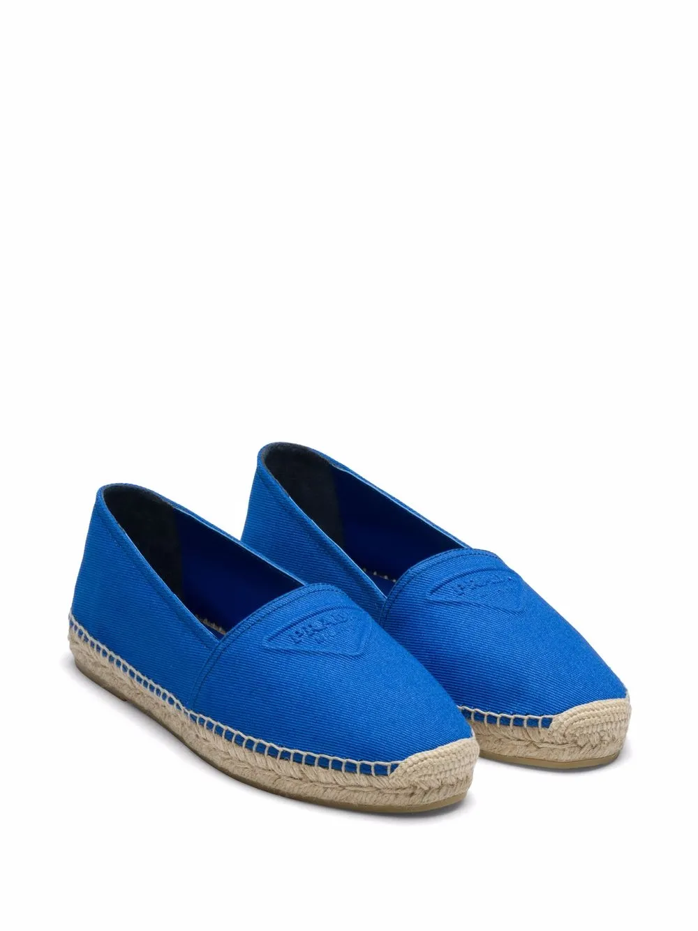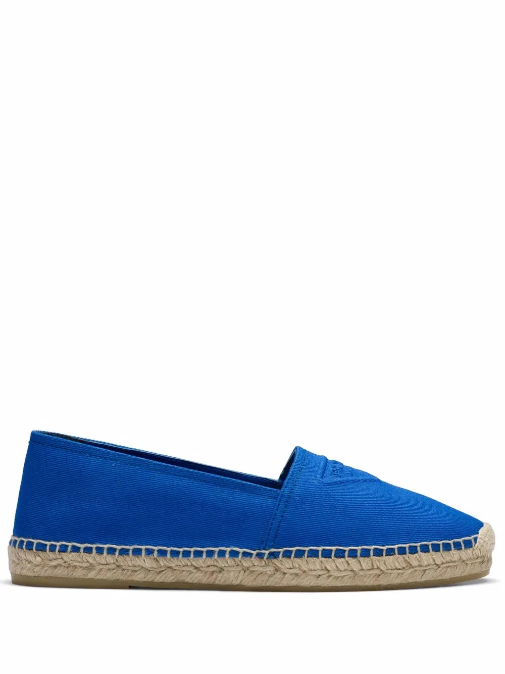 Crafted from cotton, these Prada espadrilles pair a bright blue hue with a tonal logo detail. This creates a lively and eye-catching finish for the pair.
