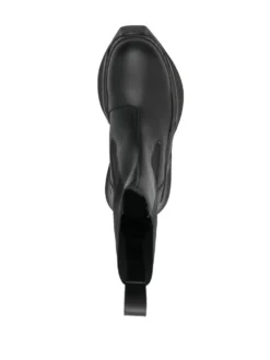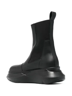 Abstract Beatle boots from RICK OWENS DRKSHDW featuring black, faux leather, elasticated side panels, pull-tab at the heel, round toe, platform sole and chunky rubber sole.