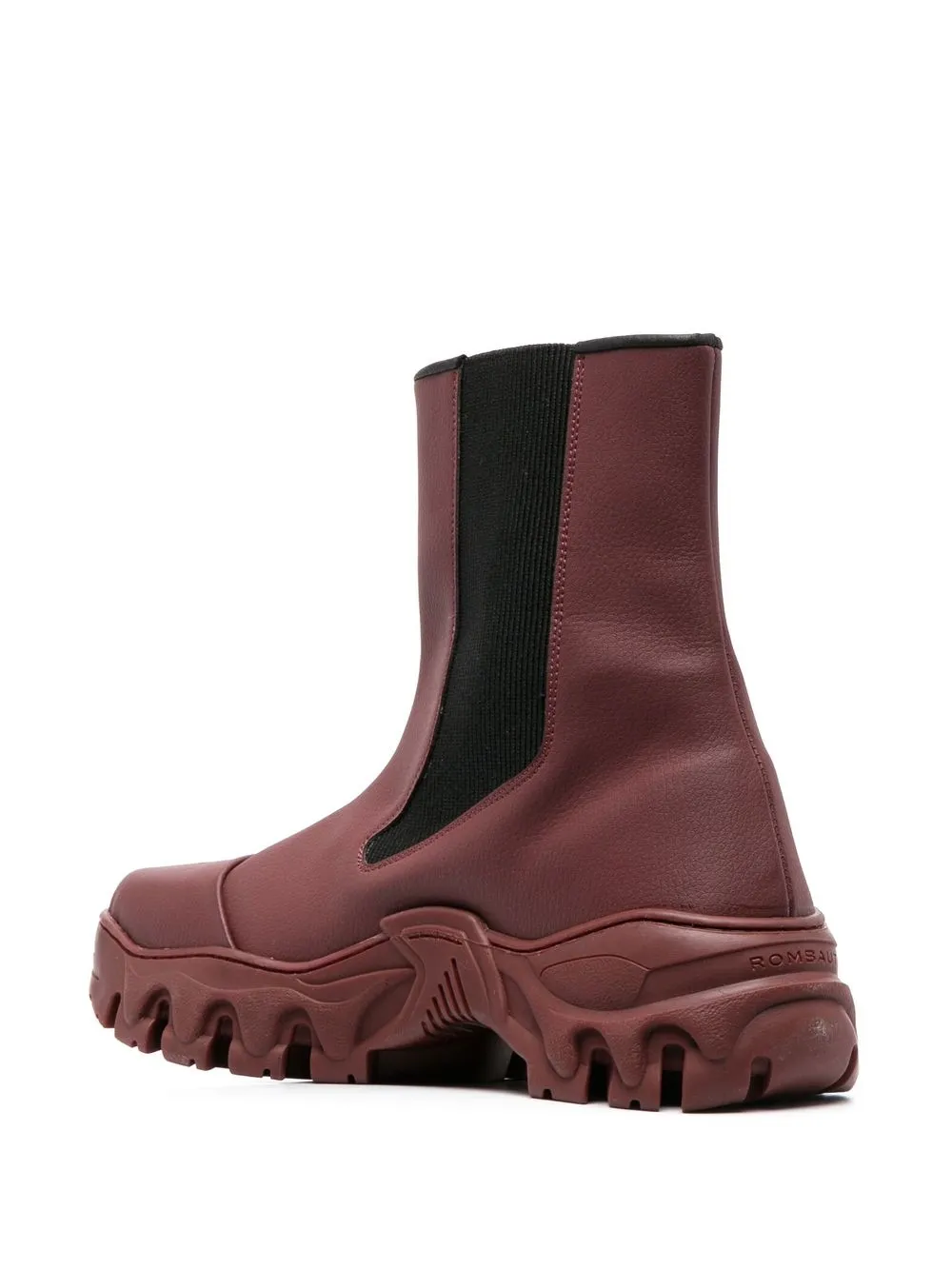 Bocaccio Chelsea ankle boots from ROMBAUT featuring wine red, faux leather, grained texture, ankle-length, debossed logo to the front, elasticated side panels, round toe and chunky rubber sole.