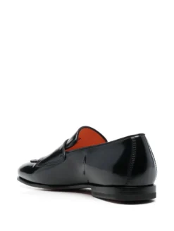 buckled-leather monk shoes from SANTONI featuring calf leather, double buckle fastening, polished finish and round toe.