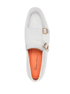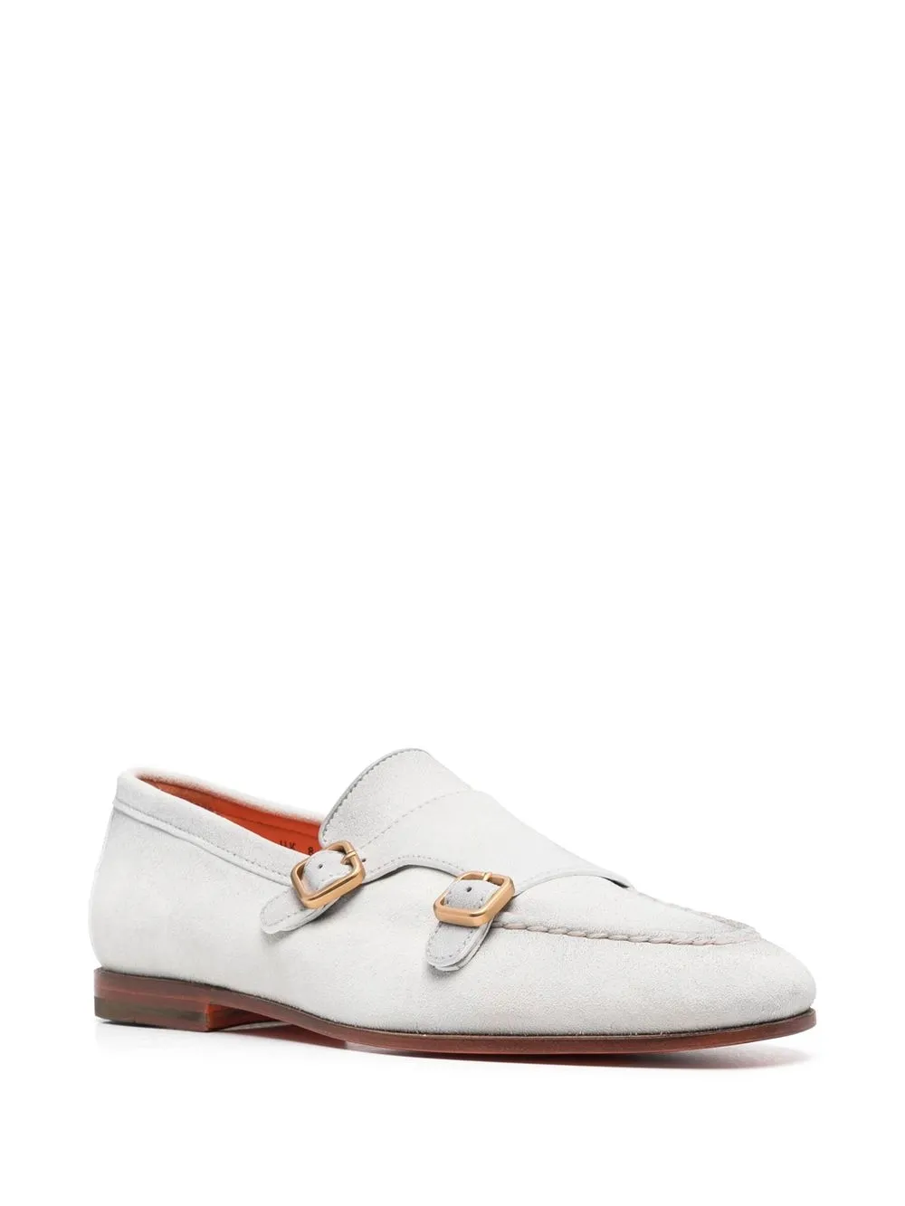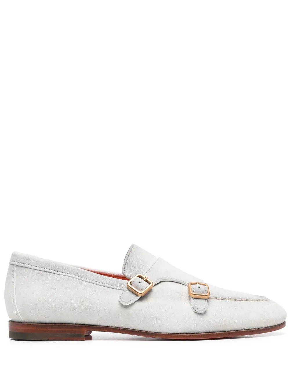 These brown Santoni double strap monk shoes are expertly crafted in Italy from smooth grey leather and adorned with a double buckle detail at the side.