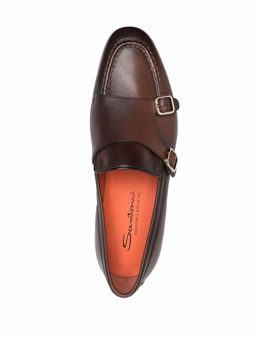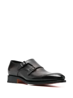 Born in 1972 from the passion of the founder Andrea for the craftsmanship of fine footwear, Santoni designs luxury shoes with a timeless style. These dark brown monk shoes are crafted from leather highlighted with two side buckle fastenings and completed by a flat sole for comfort.Â