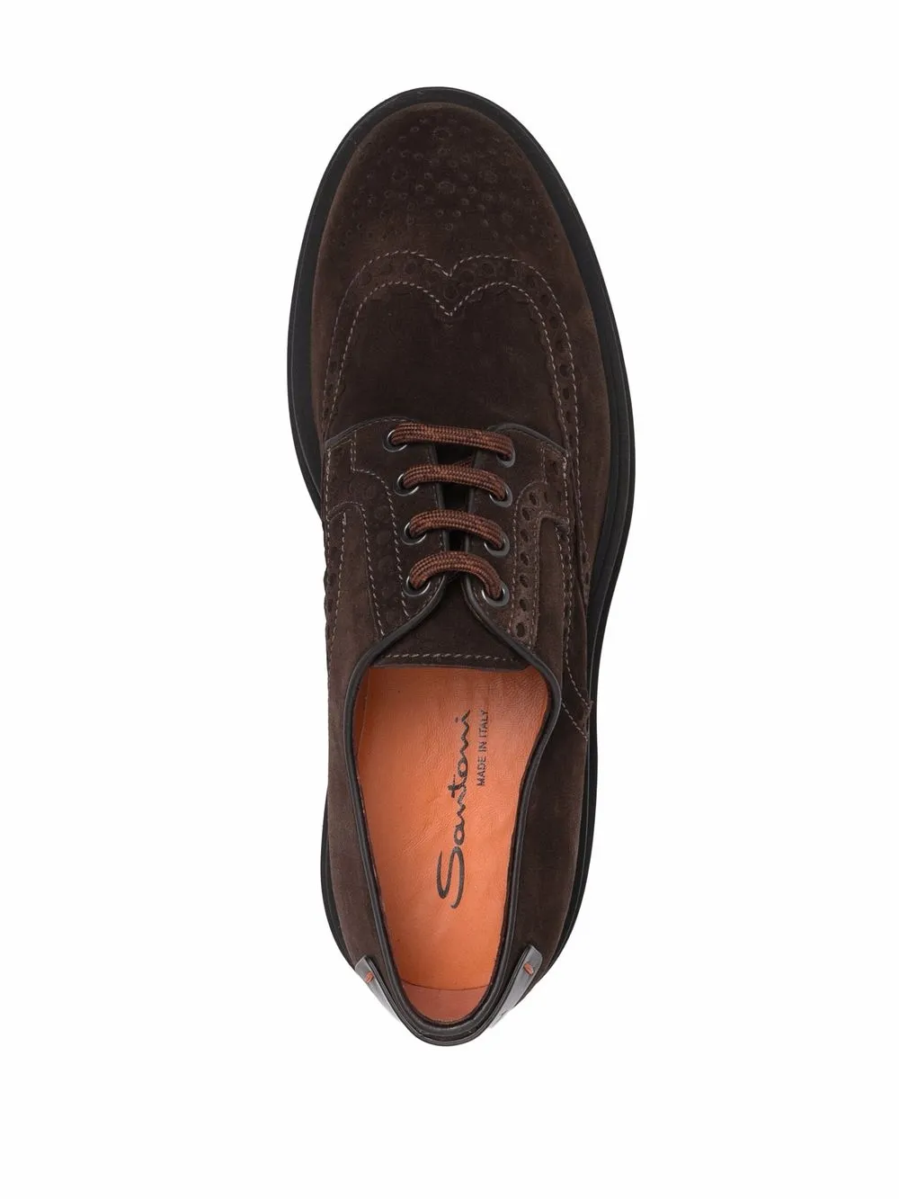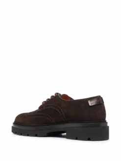Brown suede leather Chelsea lace-up derby shoes from SANTONI featuring front lace-up fastening, mid heel, logo patch to the rear and rubber lug sole.