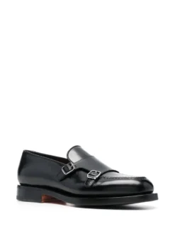 double buckle loafers from SANTONI featuring black, calf leather, silver-tone hardware, double buckle fastening, branded leather insole and rubber sole.