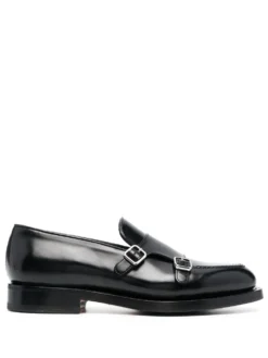 double buckle loafers from SANTONI featuring black, calf leather, silver-tone hardware, double buckle fastening, branded leather insole and rubber sole.