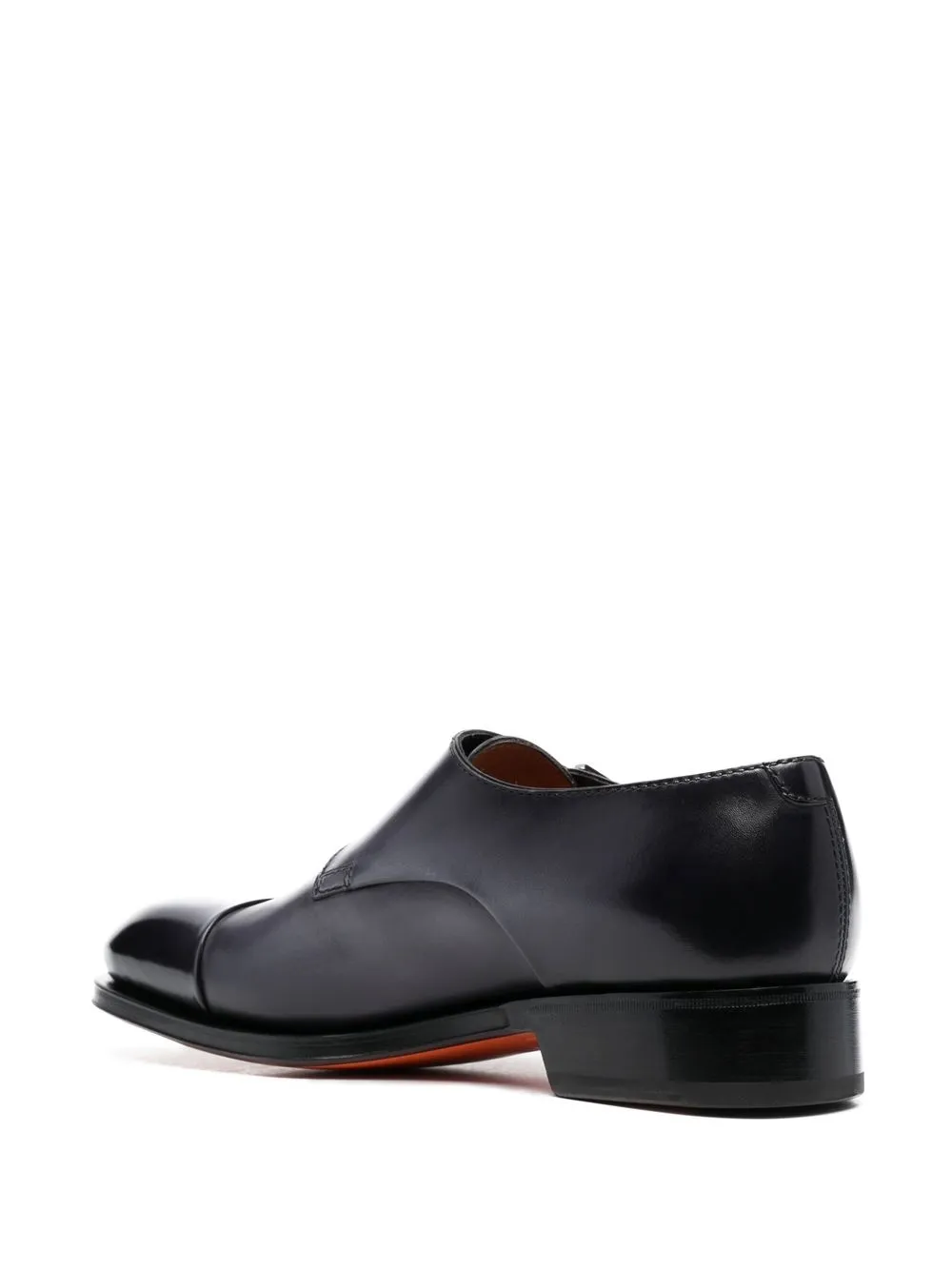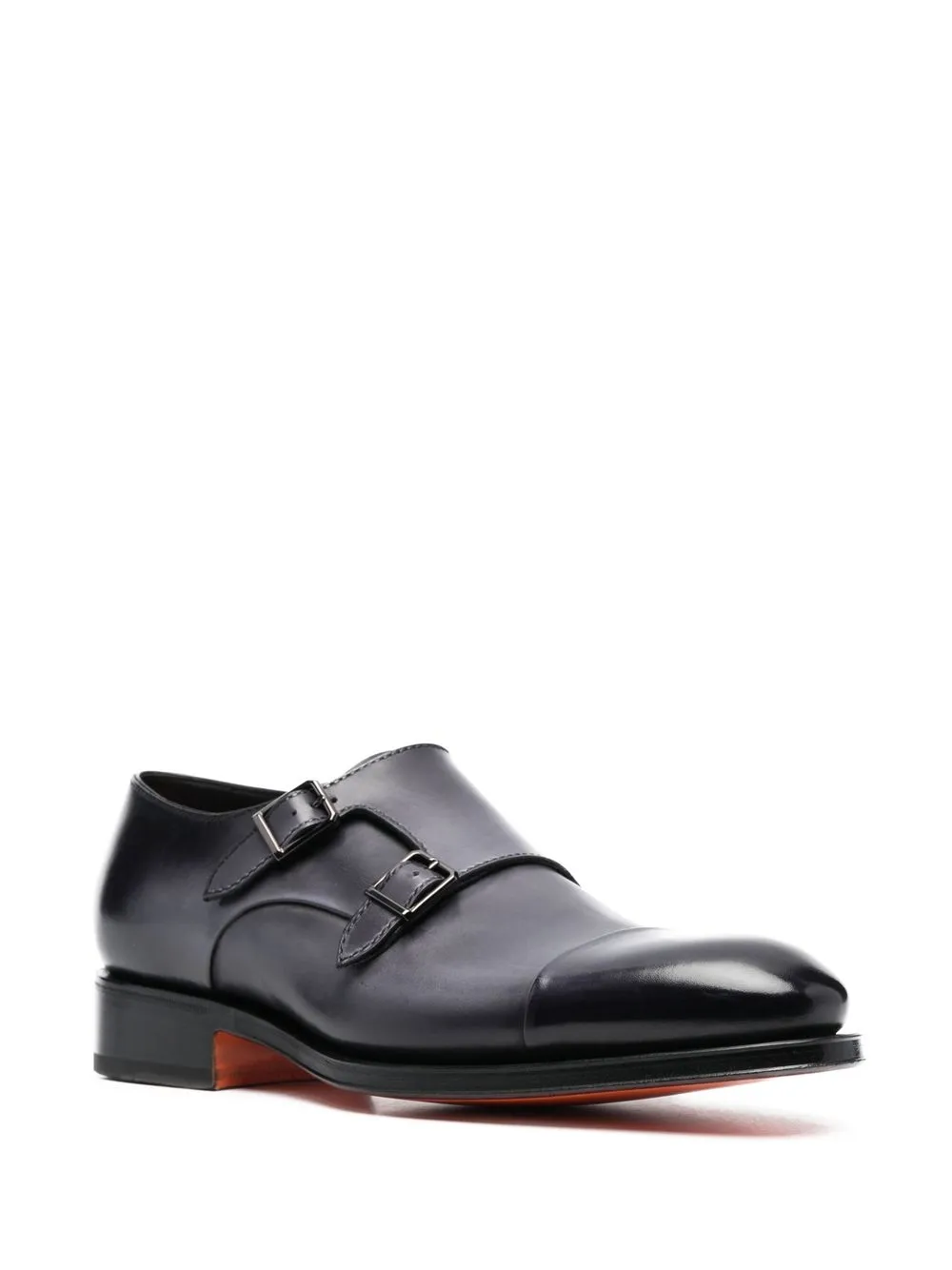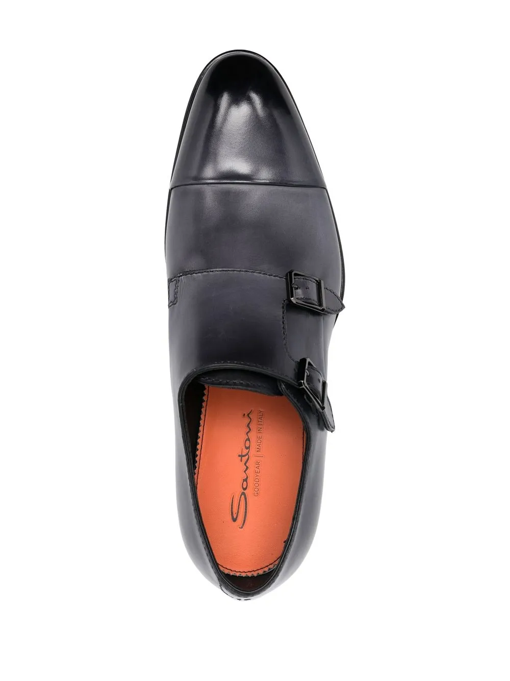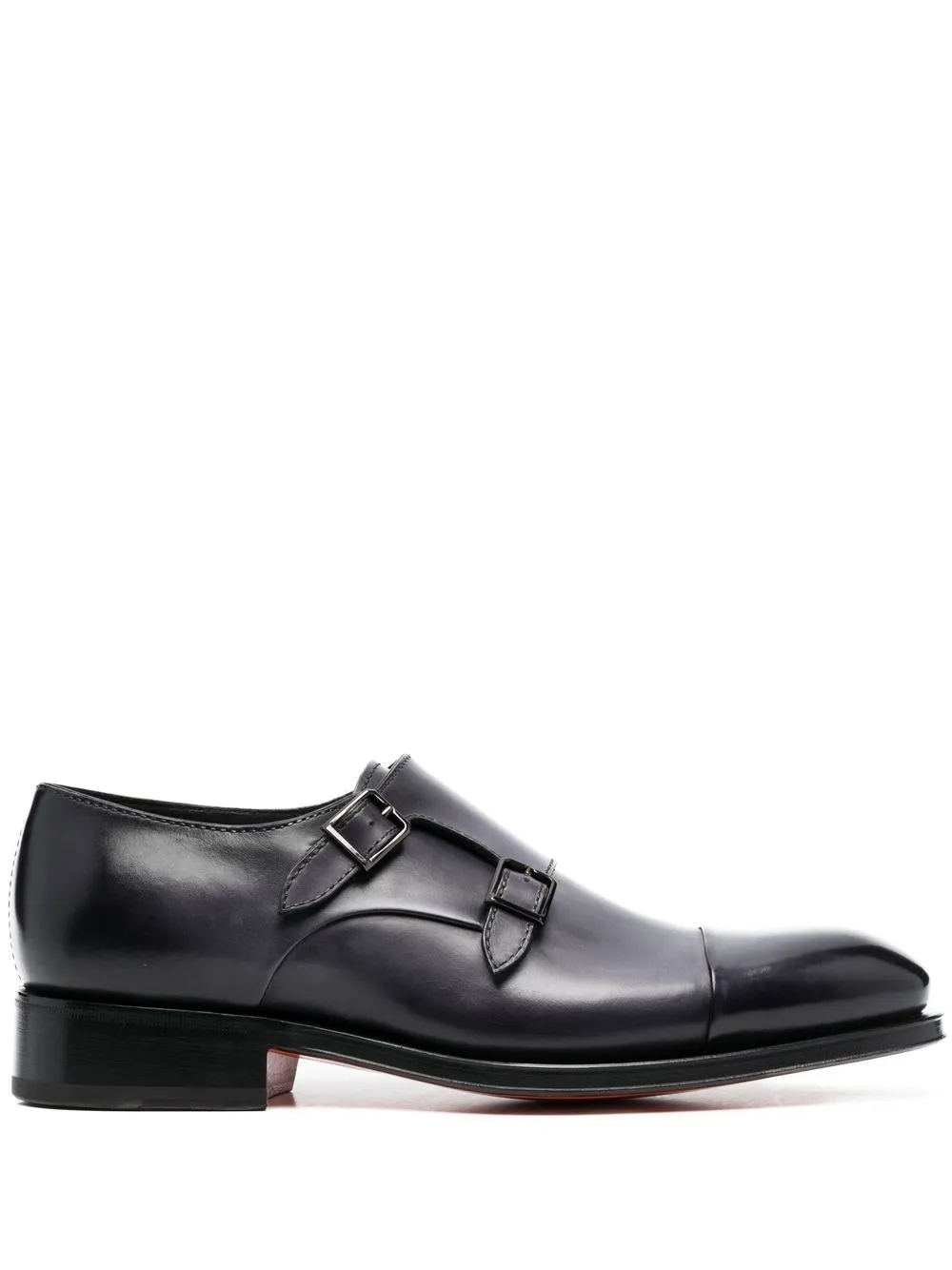 These black Santoni double-strap monk shoes are expertly crafted in Italy fromt smooth leather are adorned with two tonal buckles for a sleek finish.