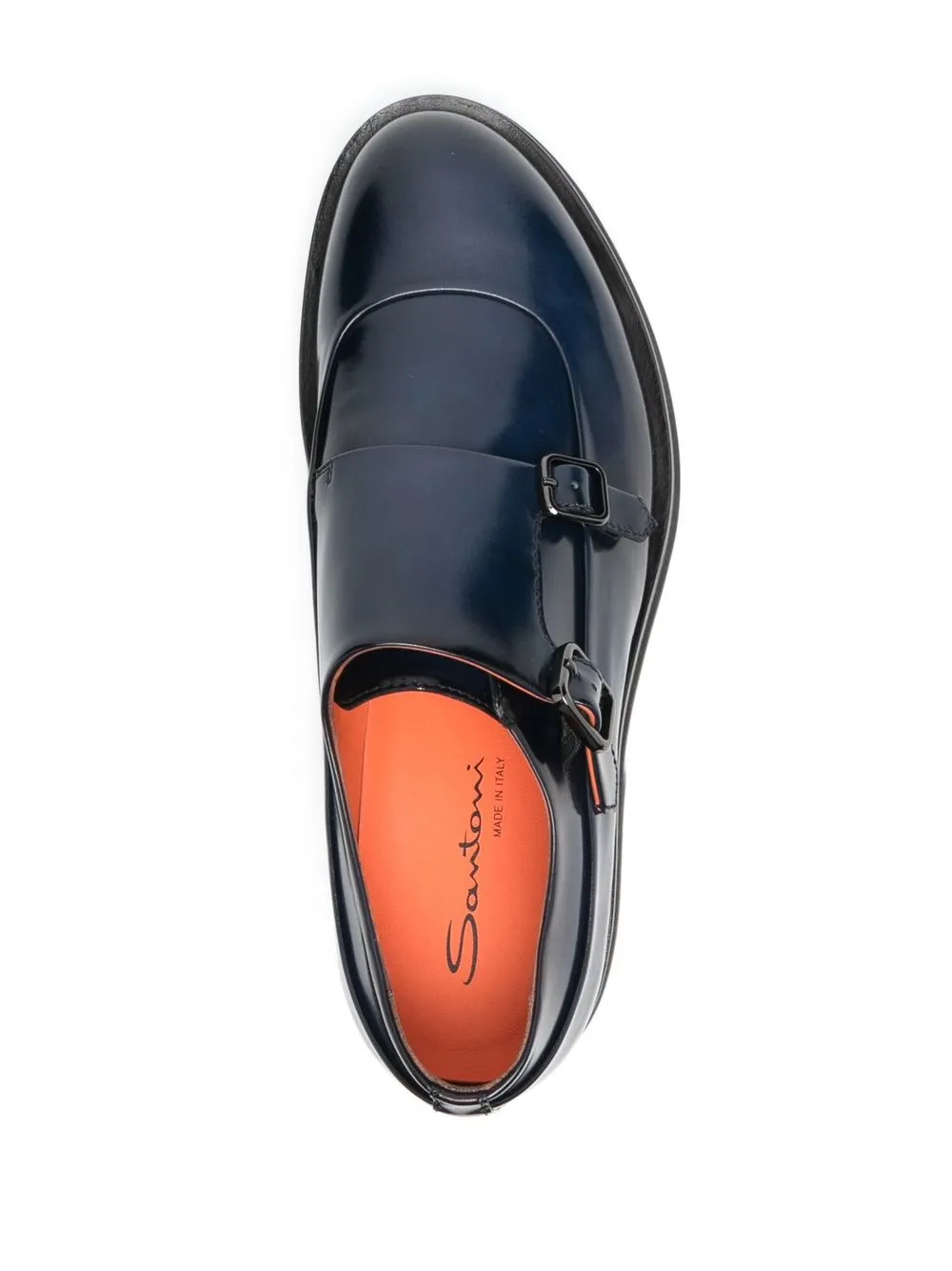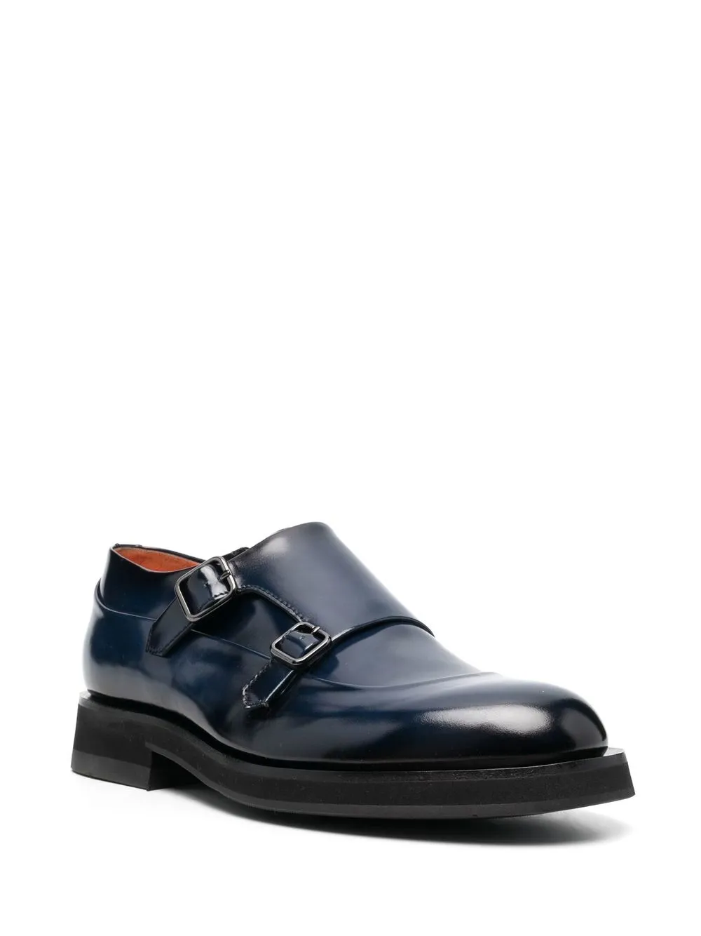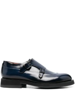 Emet monk shoes from SANTONI featuring navy blue, calf leather, almond toe, buckle fastening, monk strap and leather sole.