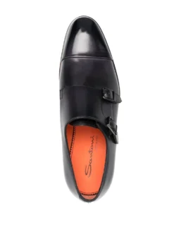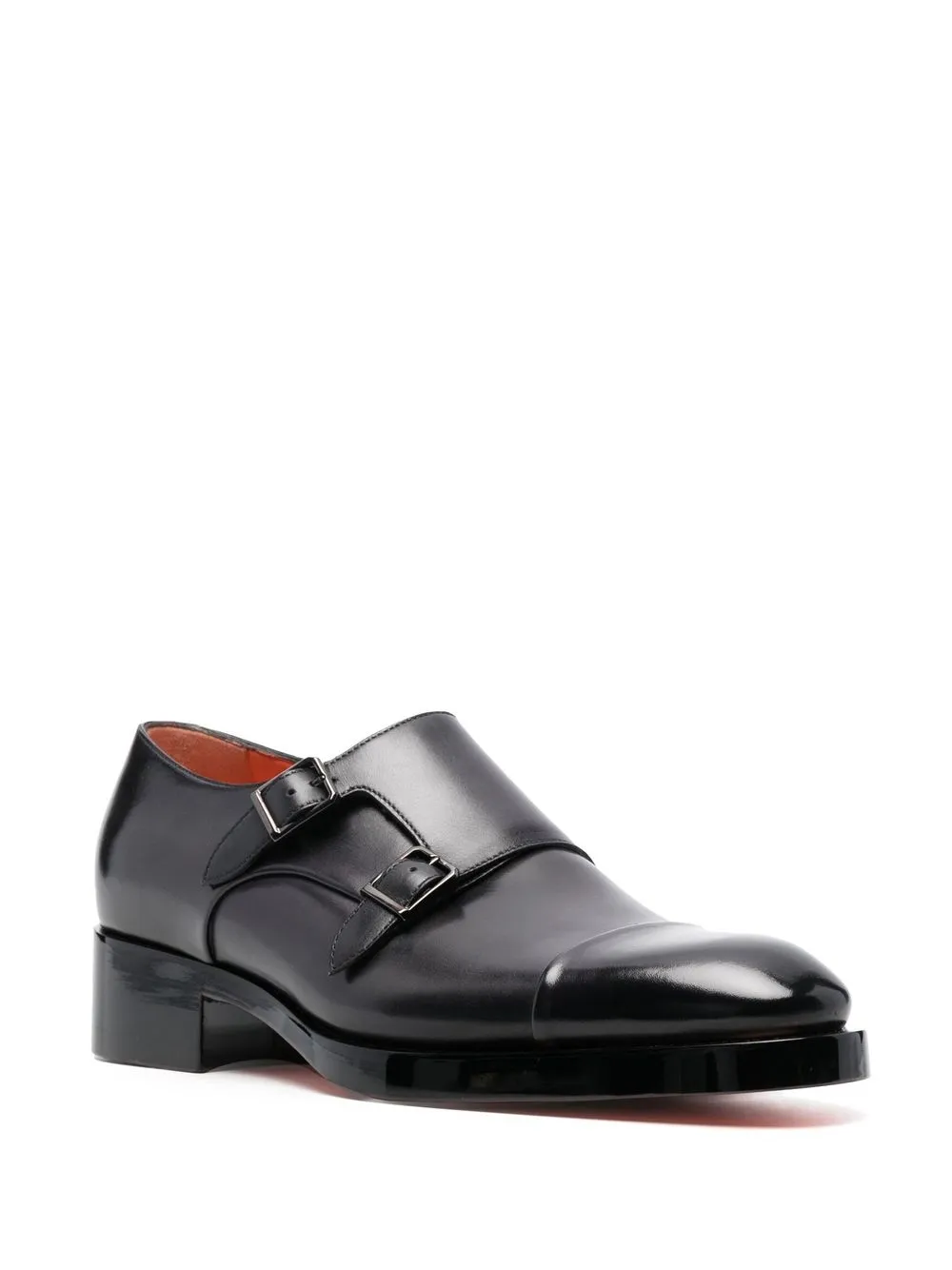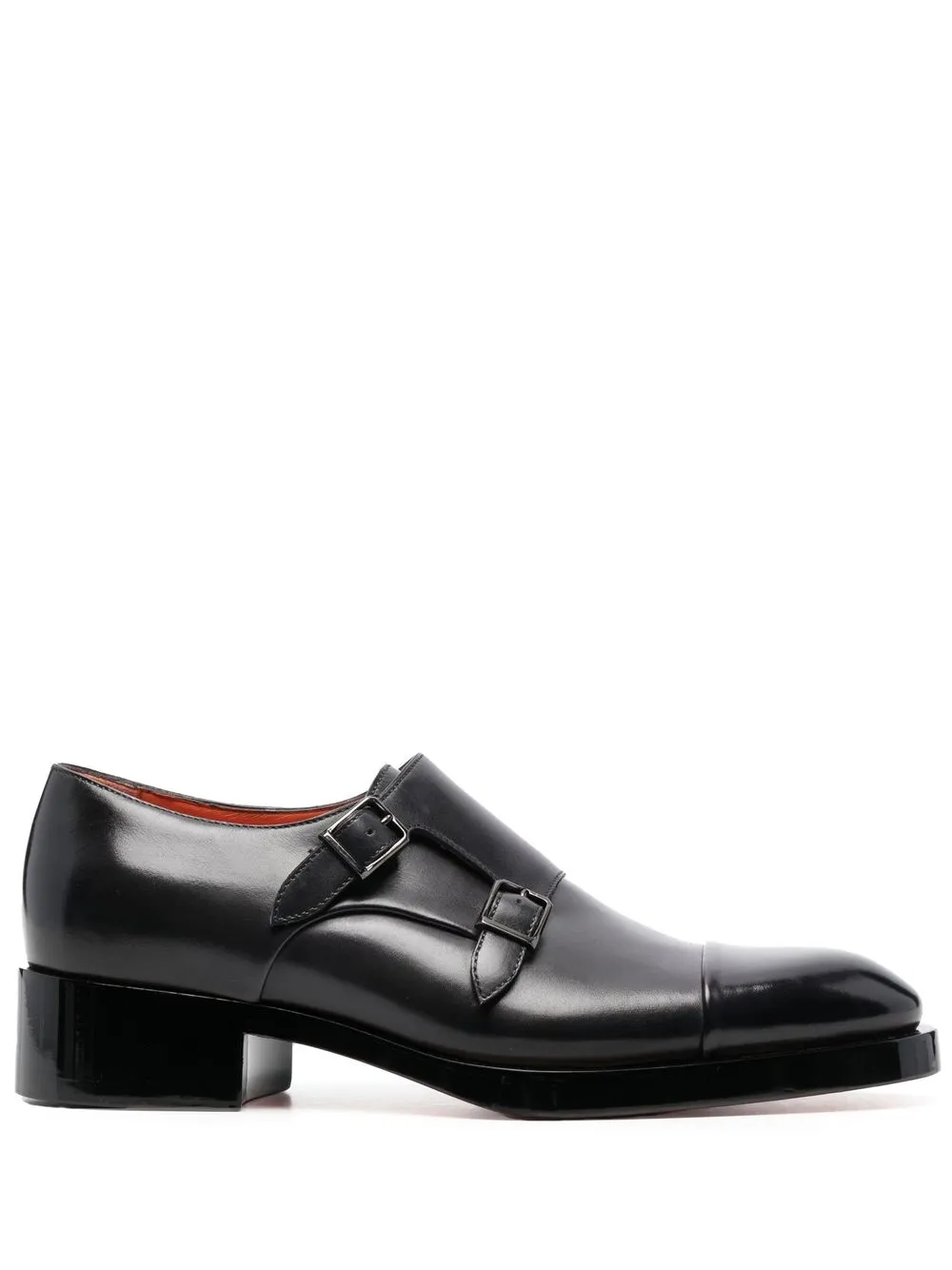 Santoni brings polish to their footwear with this pair of panelled double-monk strap shoes. Boasting a contrasting high-shine toecap, these leather shoes have an all-black colourway.