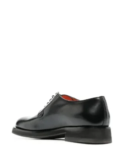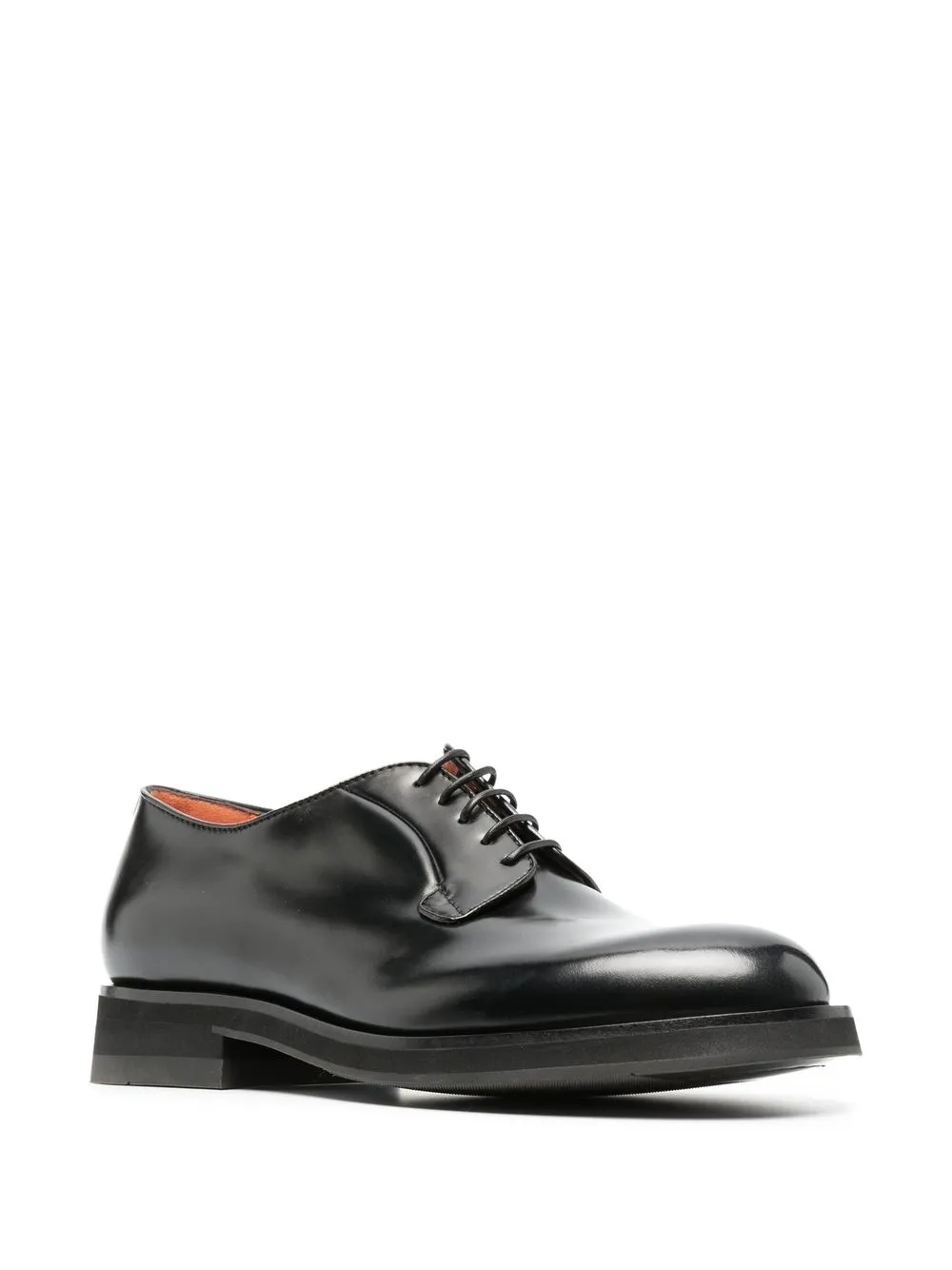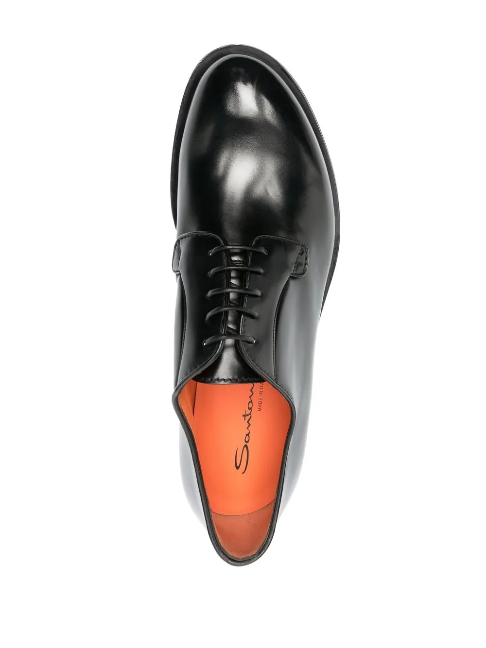 round-toe lace-up Derby shoes from SANTONI featuring black, calf leather, front lace-up fastening, round toe and low block heel.