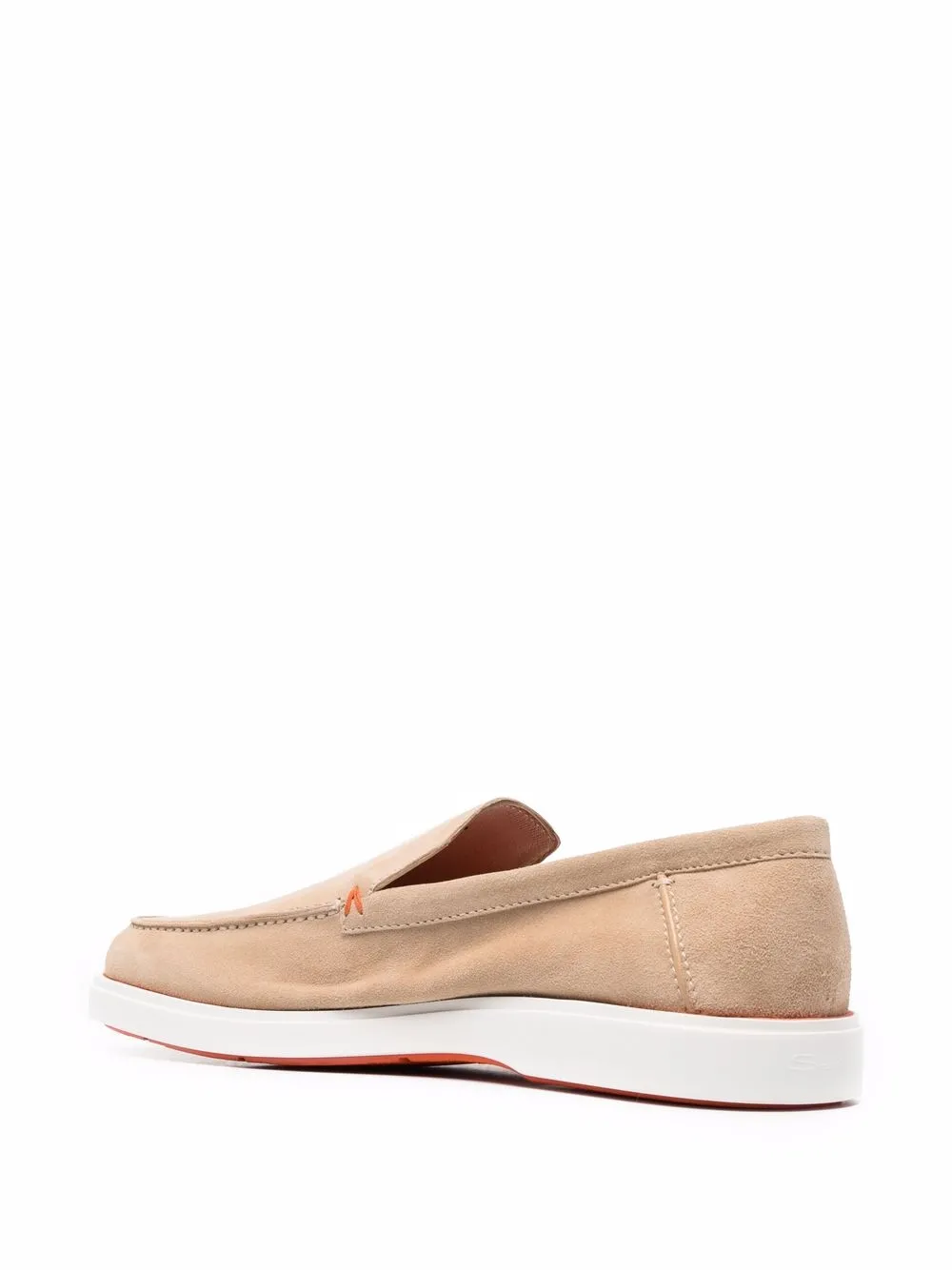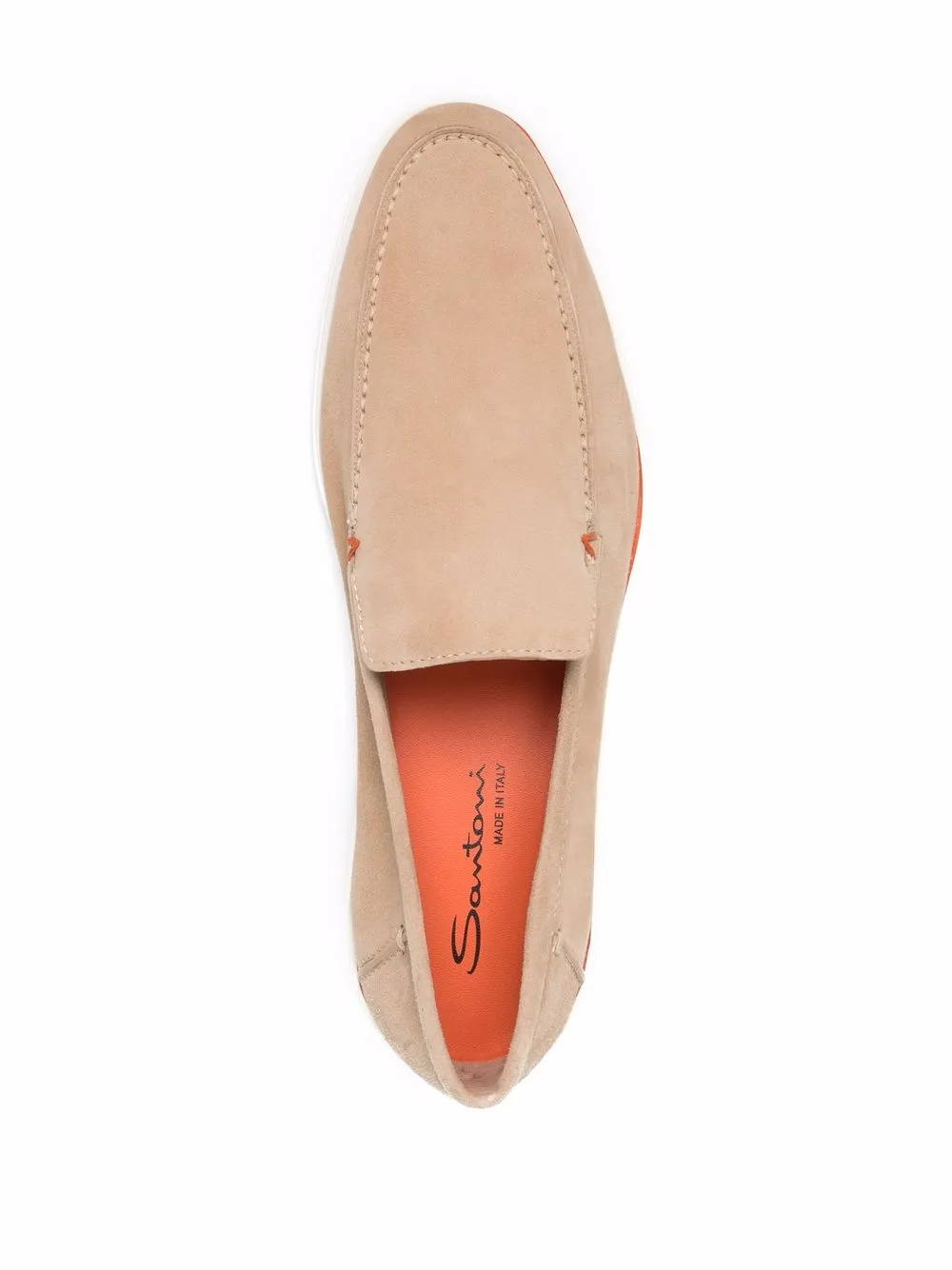 Beige/orange/white suede/leather slip-on suede loafers from SANTONI featuring almond toe, slip-on style, branded insole, flat rubber sole and stitch detailing.